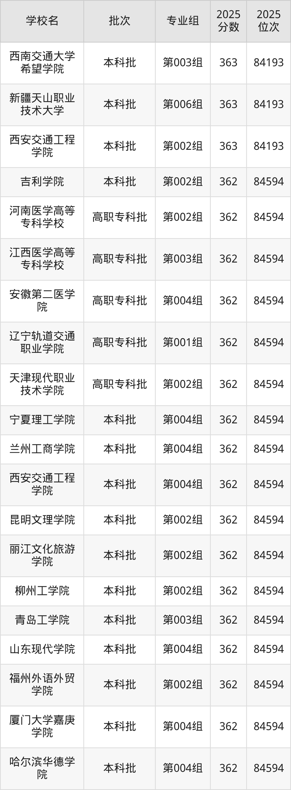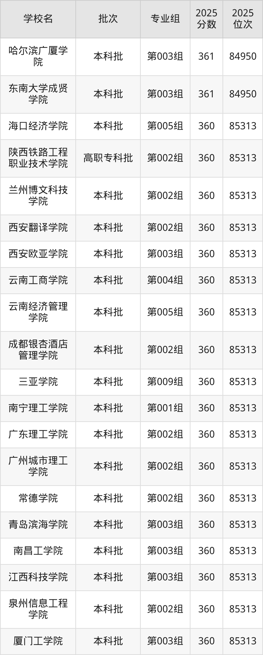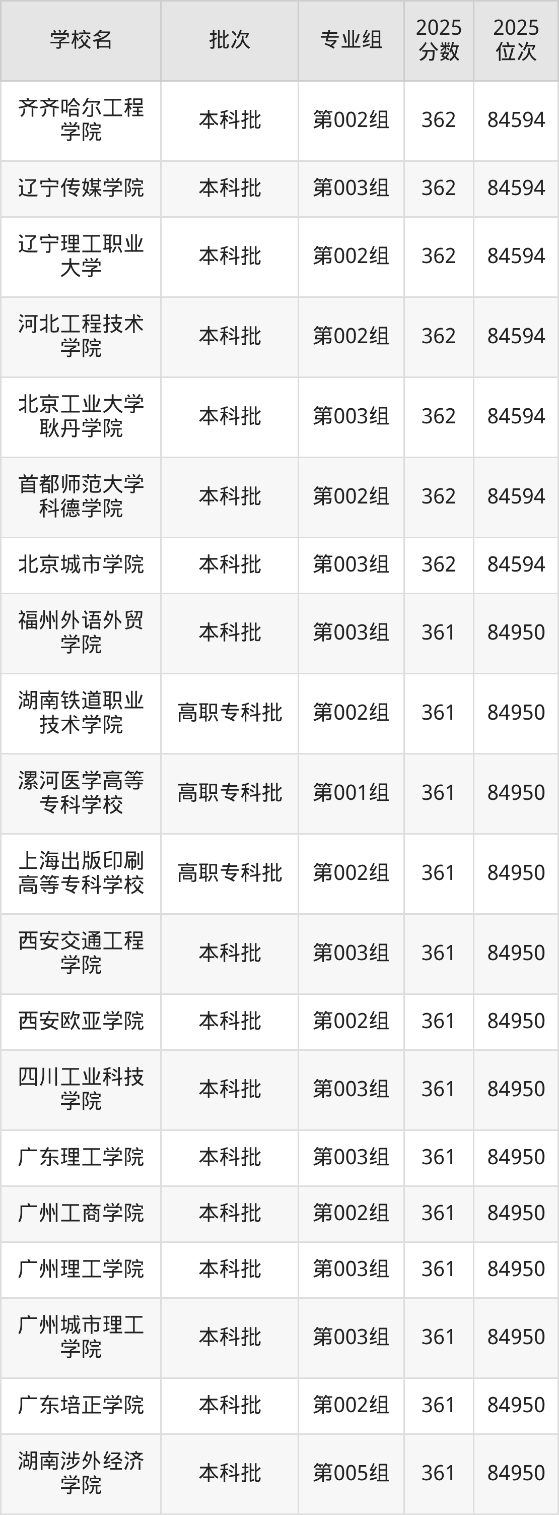 这些都是2026年高考物理类84595名~84950名考生可以报考的大学,更多学校名单如下表所示:
