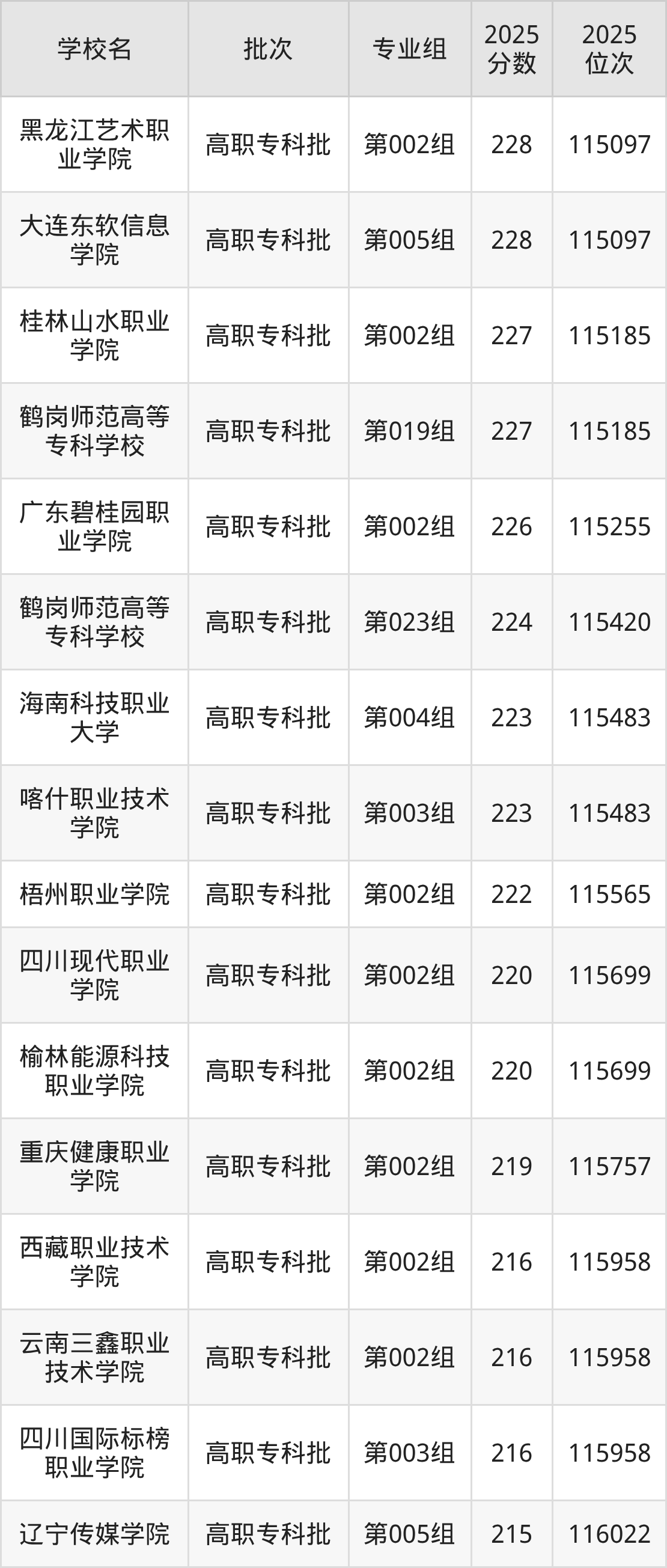 2025年黑龙江高考物理类222分(115484名~115565名)能上的大学有梧州职业学院第002组。