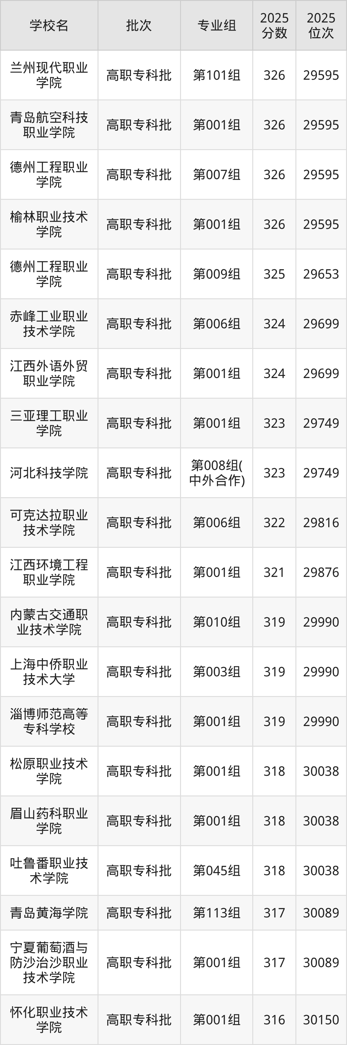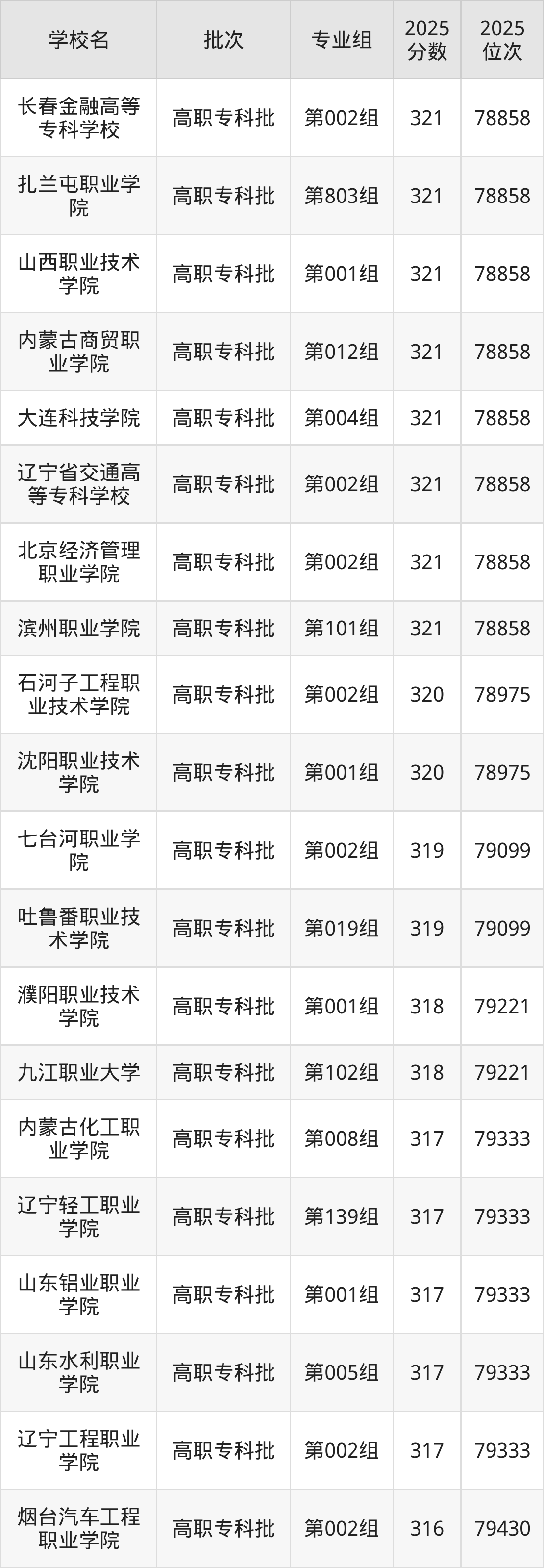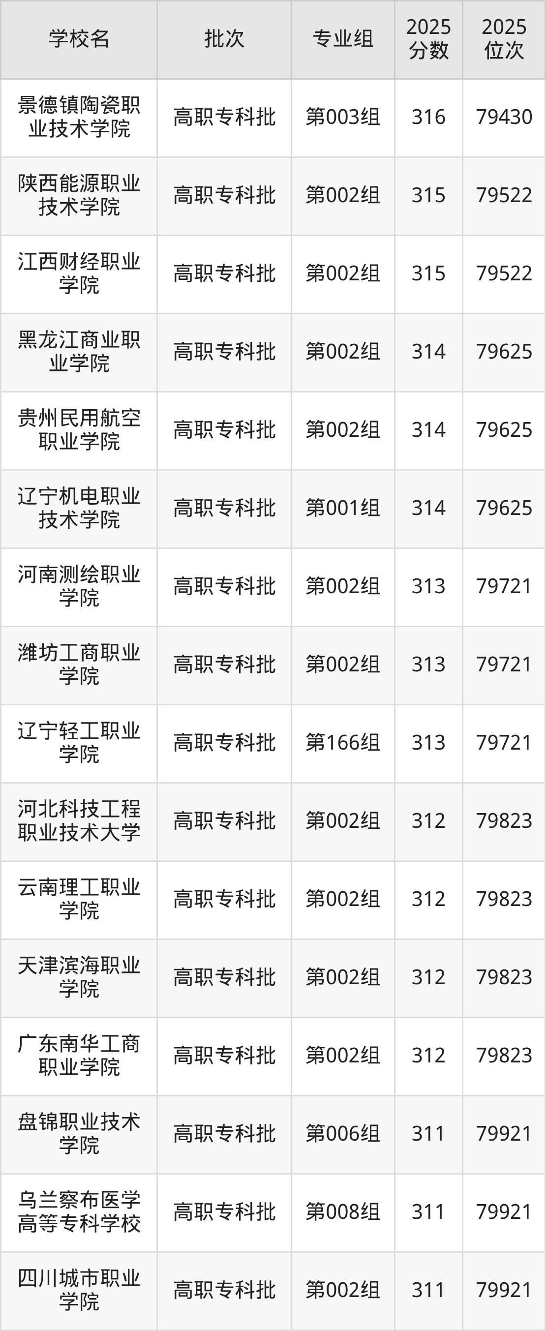 2025年内蒙古高考物理类316分(79334名~79430名)能上的大学有景德镇陶瓷职业技术学院第003组、烟台汽车工程职业学院第002组。