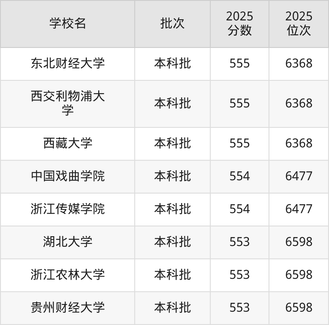 这些都是2026年高考历史类5974名~6100名考生可以报考的大学,更多学校名单如下表所示: