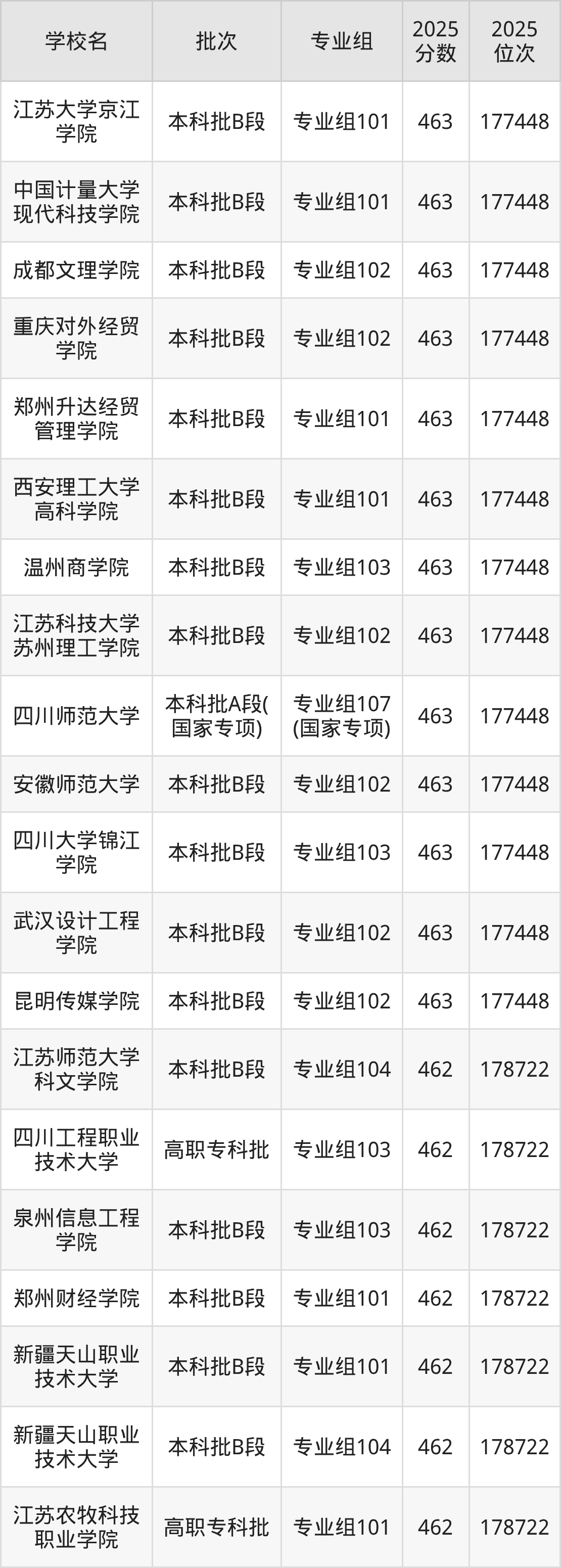 这些都是2026年高考物理类177449名~178722名考生可以报考的大学,更多学校名单如下表所示: