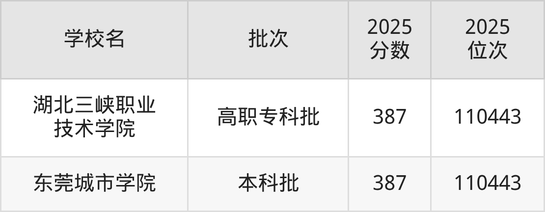 这些都是2026年高考物理类109663名~110054名考生可以报考的大学,更多学校名单如下表所示: