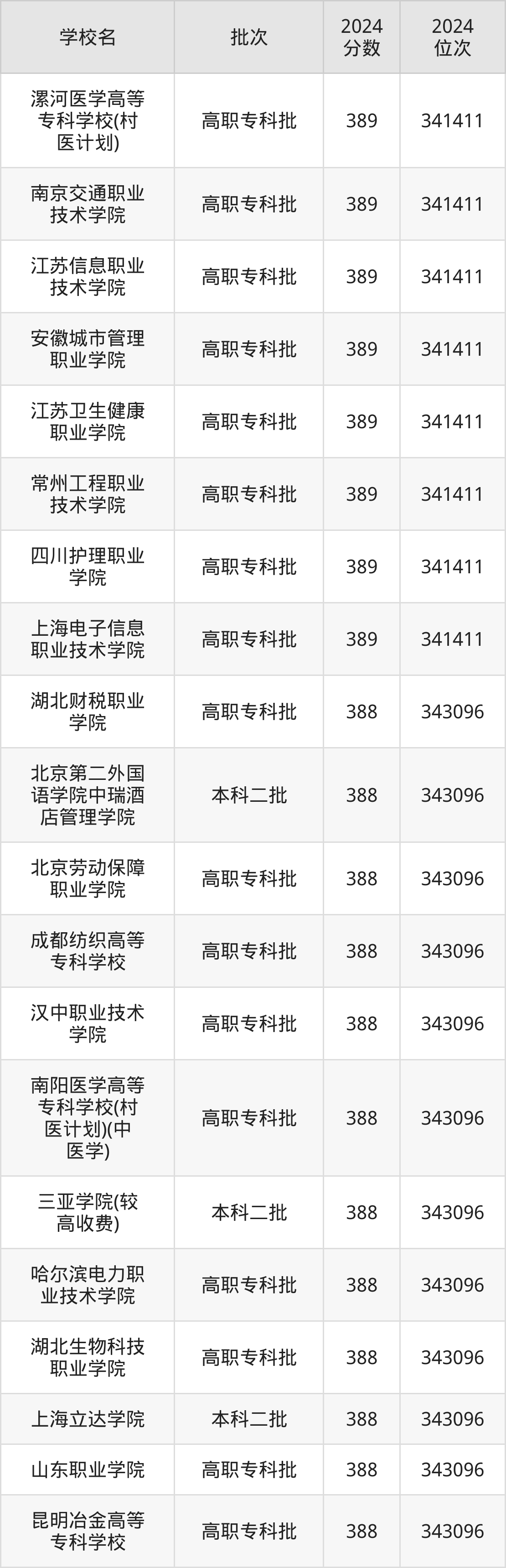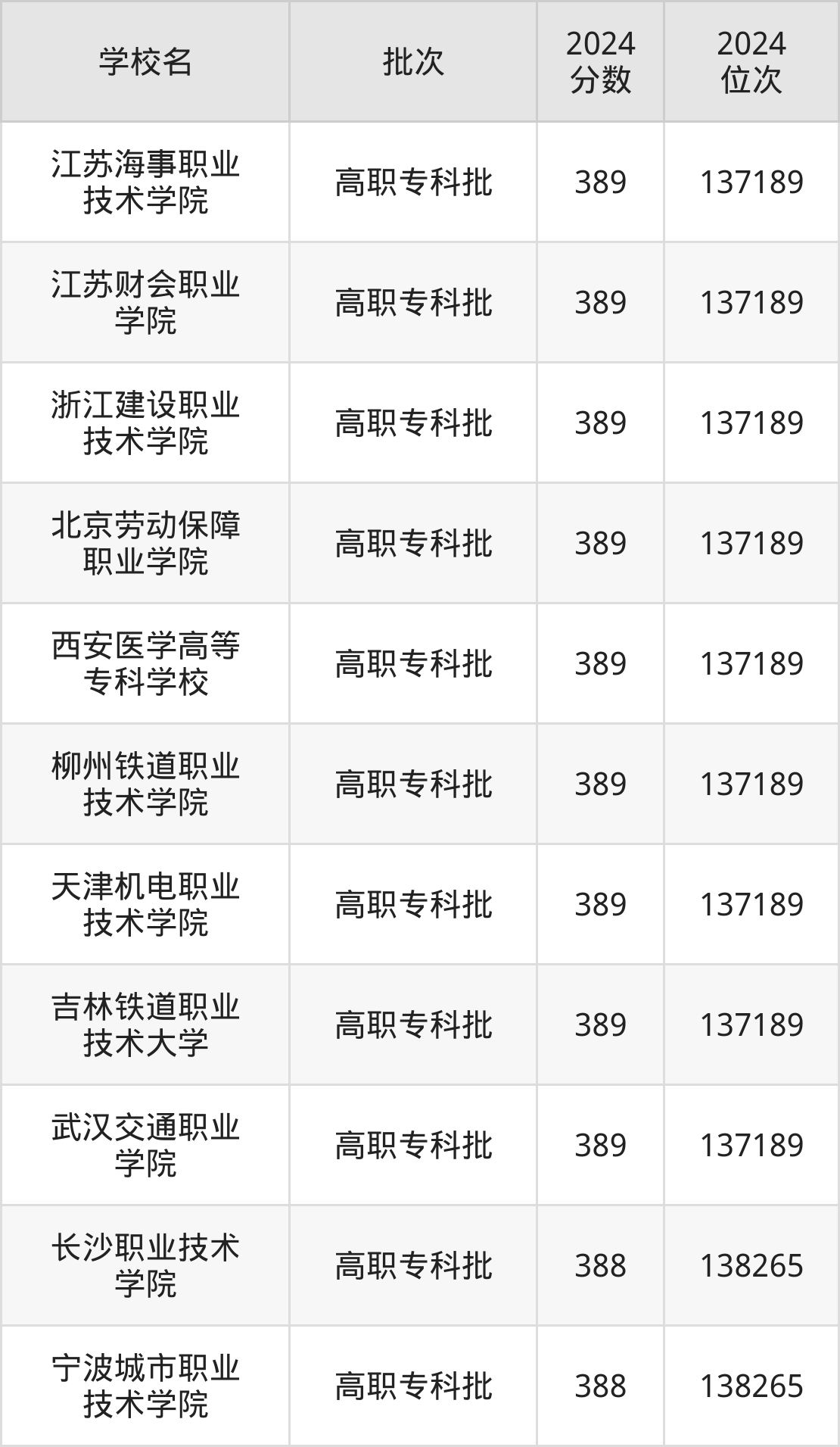 2024年河南高考文科388分(137190名~138265名)能上的大学有宁波城市职业技术学院、长沙职业技术学院。
