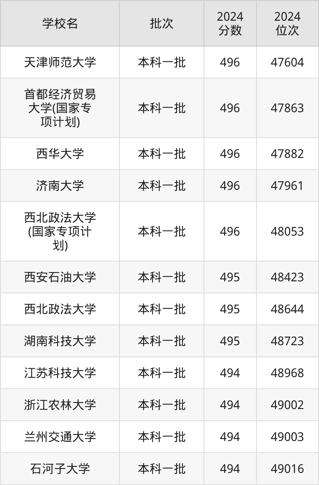 这些都是2025年高考文科12199名~12455名考生可以报考的大学,更多学校名单如下表所示: