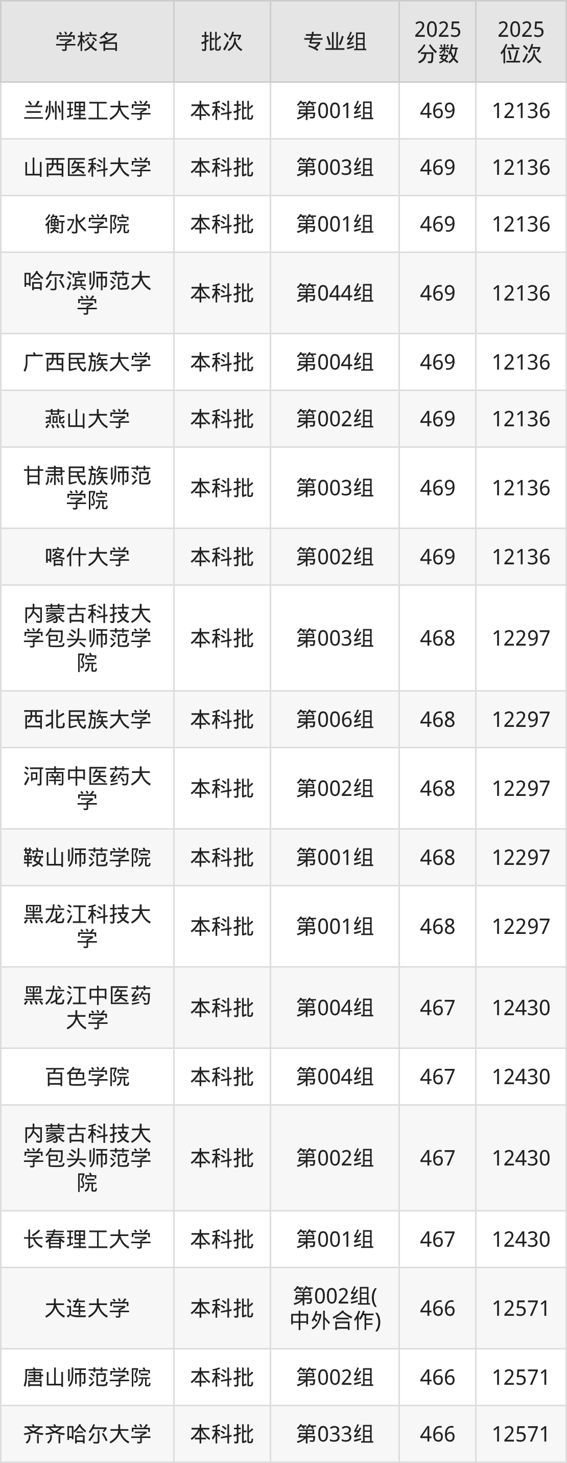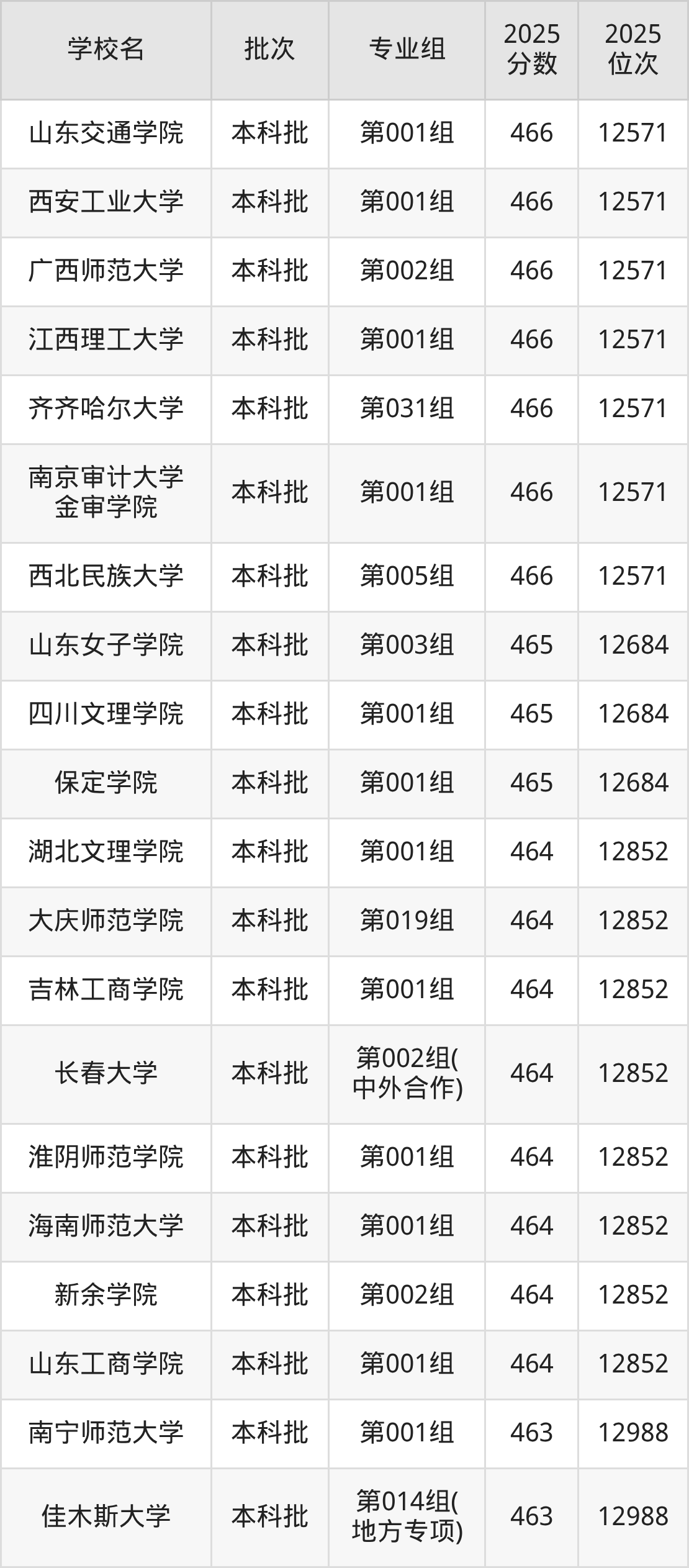 2025年黑龙江高考历史类465分(12572名~12684名)能上的大学有保定学院第001组、山东女子学院第003组、四川文理学院第001组。