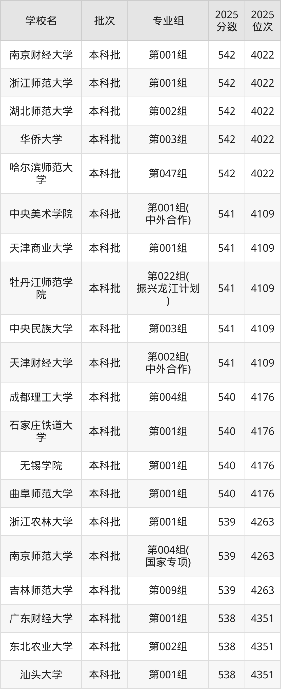 另外录取位次低于该区间(较稳妥)的有牡丹江师范学院第025组(振兴龙江计划)(4667名)、南京林业大学第001组(4667名)等;录取位次高于该区间(可冲)的有北京物资学院第001组(4510名)、哈尔滨师范大学第054组(国家专项)(4510名)等。