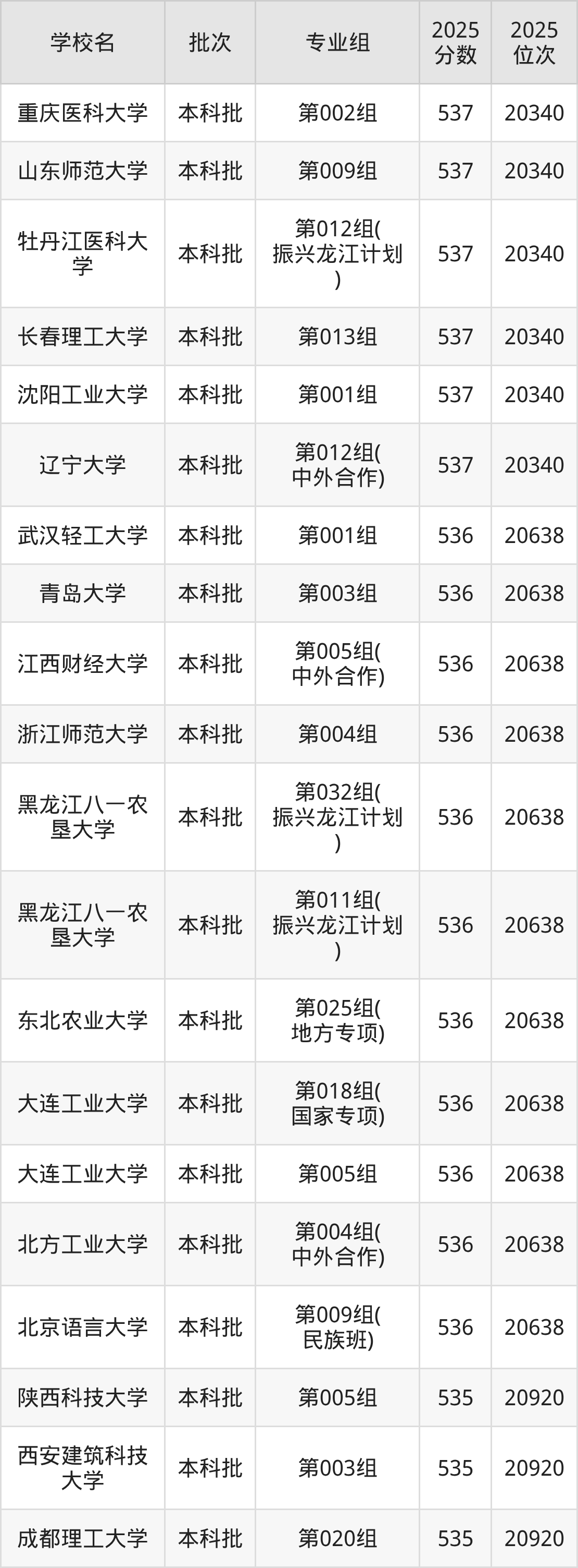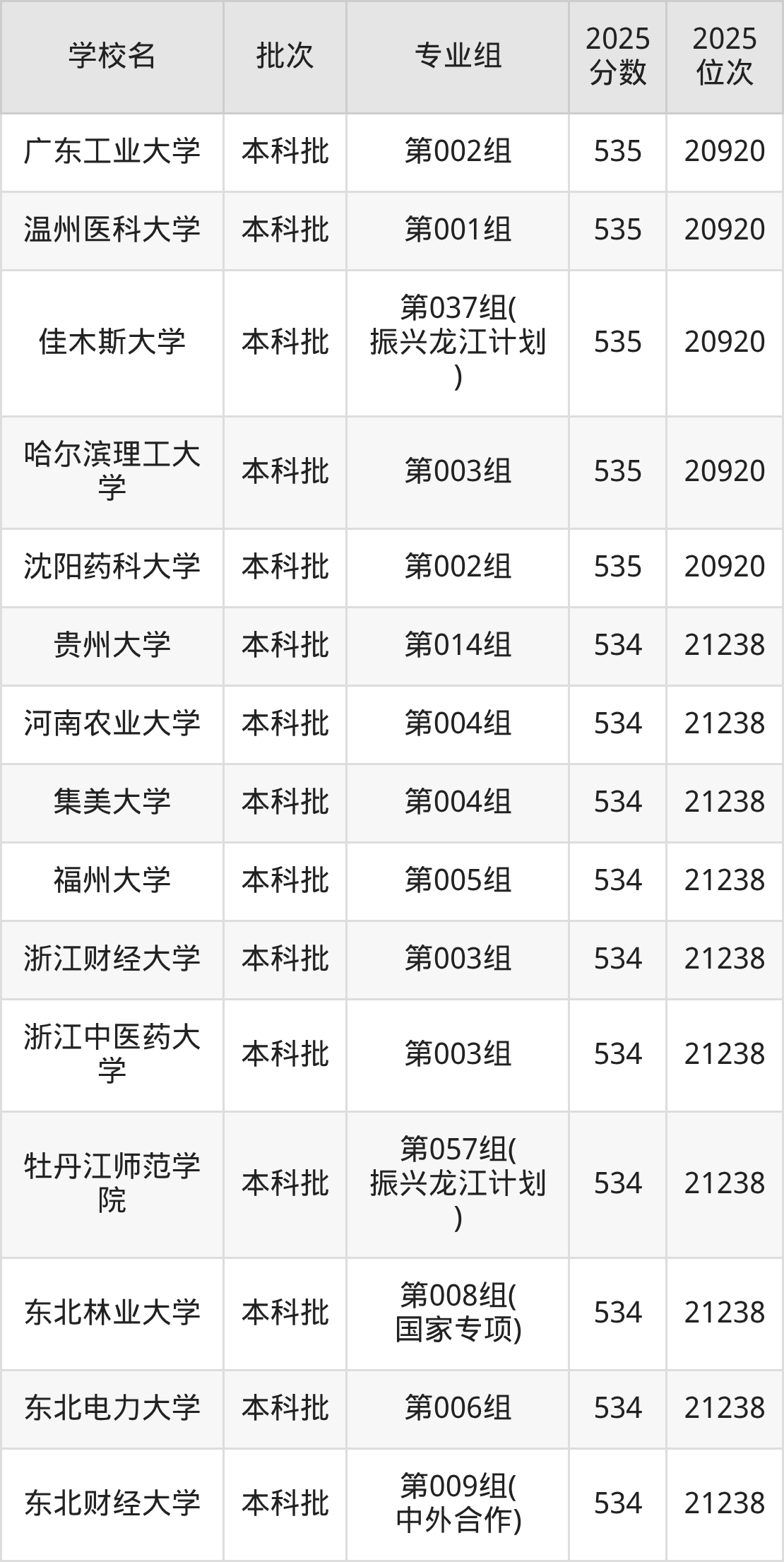 2025年黑龙江高考物理类535分(20639名~20920名)能上的大学有沈阳药科大学第002组、哈尔滨理工大学第003组、佳木斯大学第037组(振兴龙江计划)、温州医科大学第001组等。