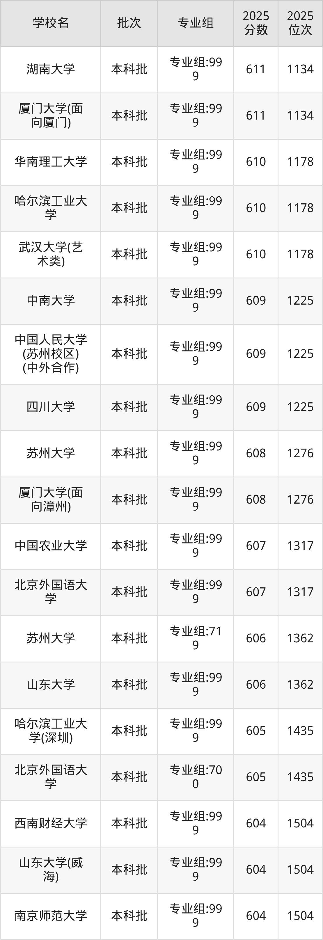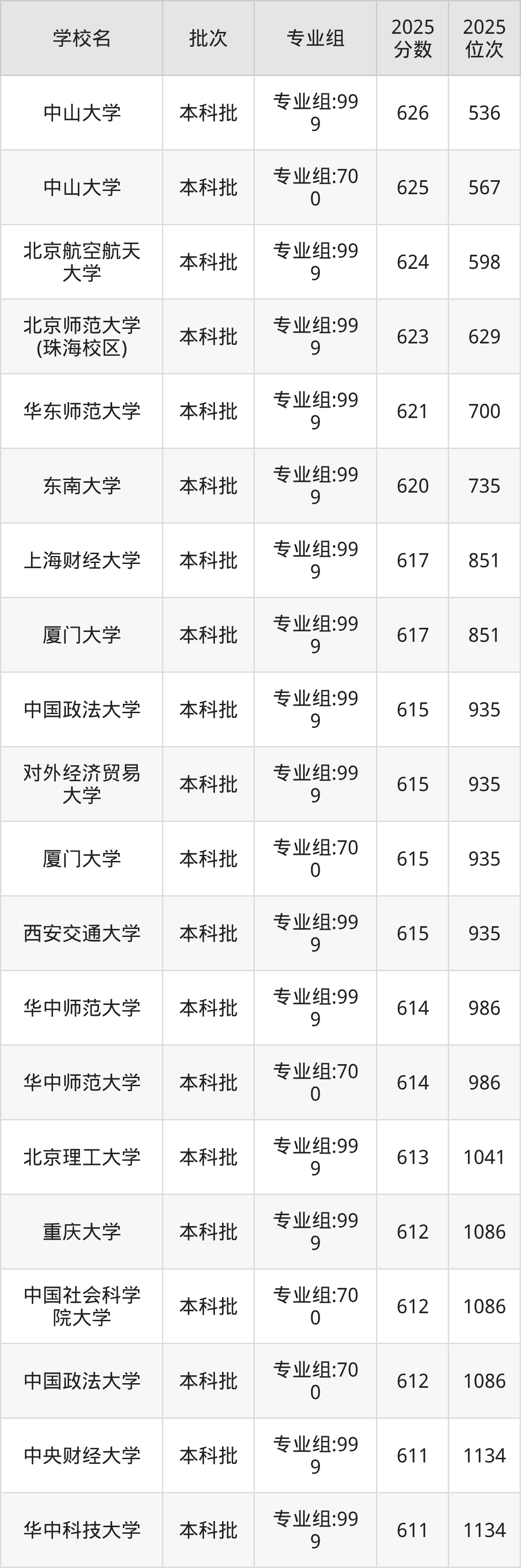 2025年福建高考历史类613分(987名~1041名)能上的大学有北京理工大学专业组:999。
