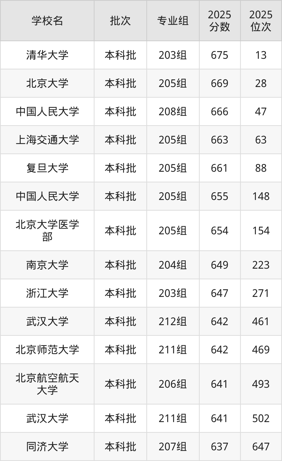 2025年广东高考历史类654分(153名~160名)能上的大学有北京大学医学部205组。