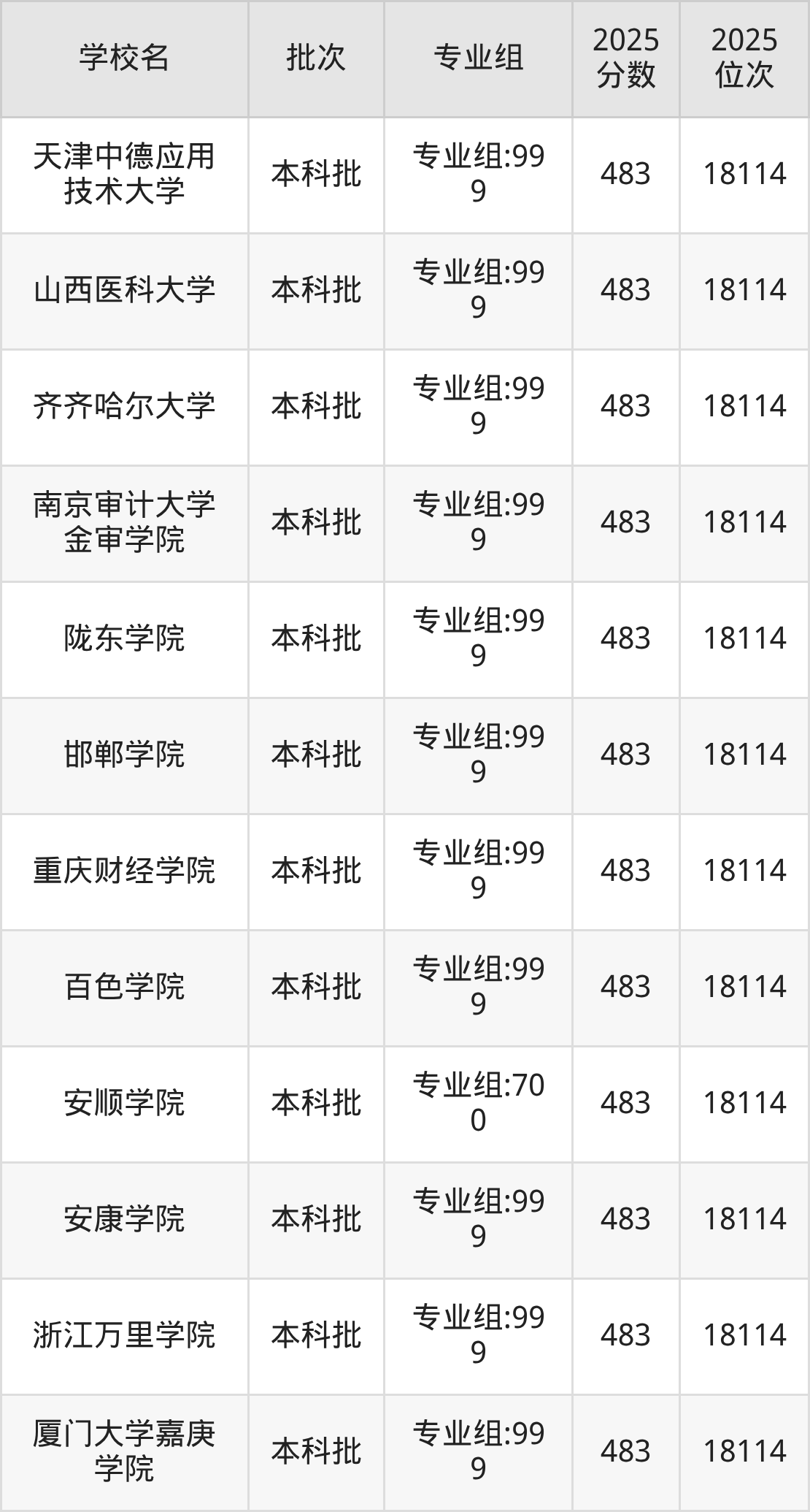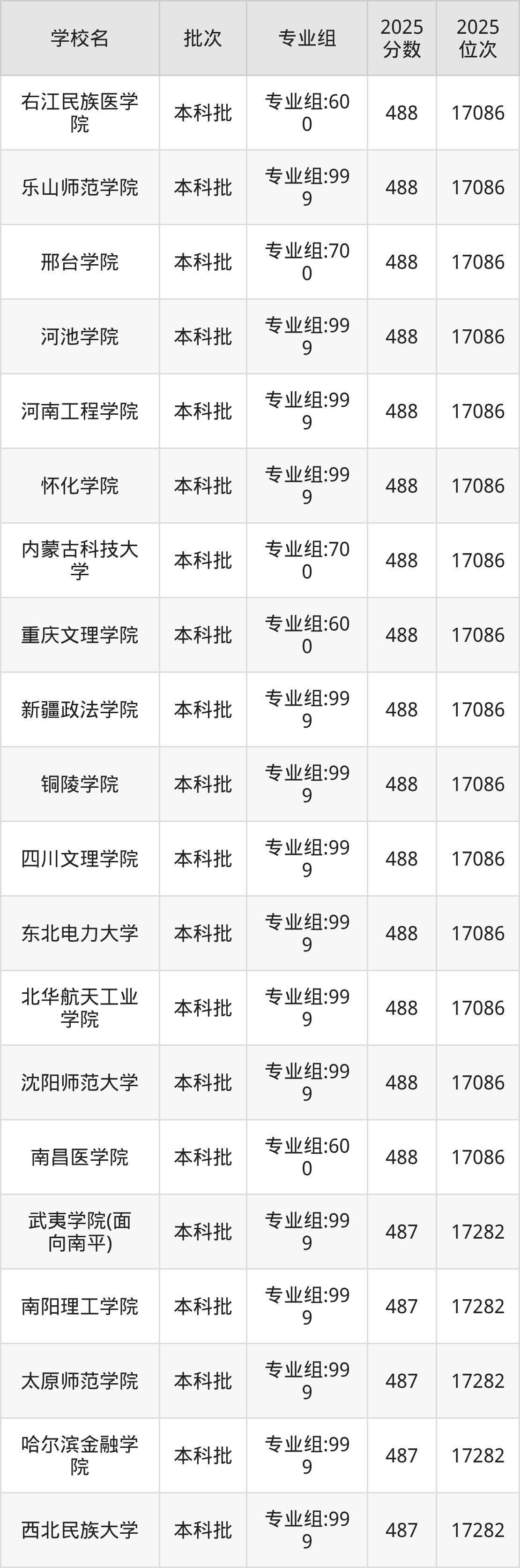 这些都是2026年高考历史类17497名~17700名考生可以报考的大学,更多学校名单如下表所示: