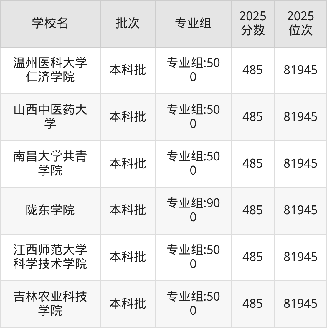 这些都是2026年高考物理类81080名~81945名考生可以报考的大学,更多学校名单如下表所示: