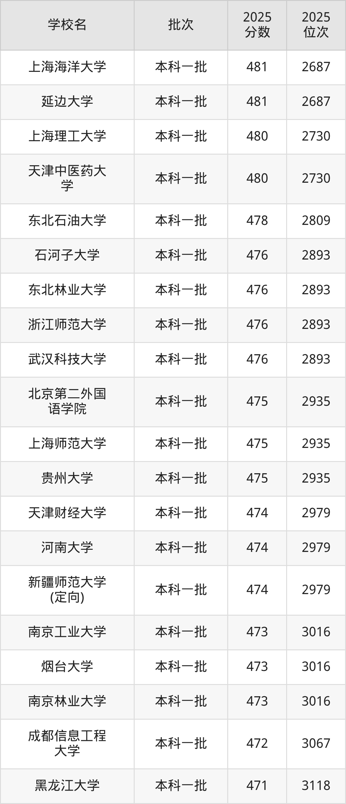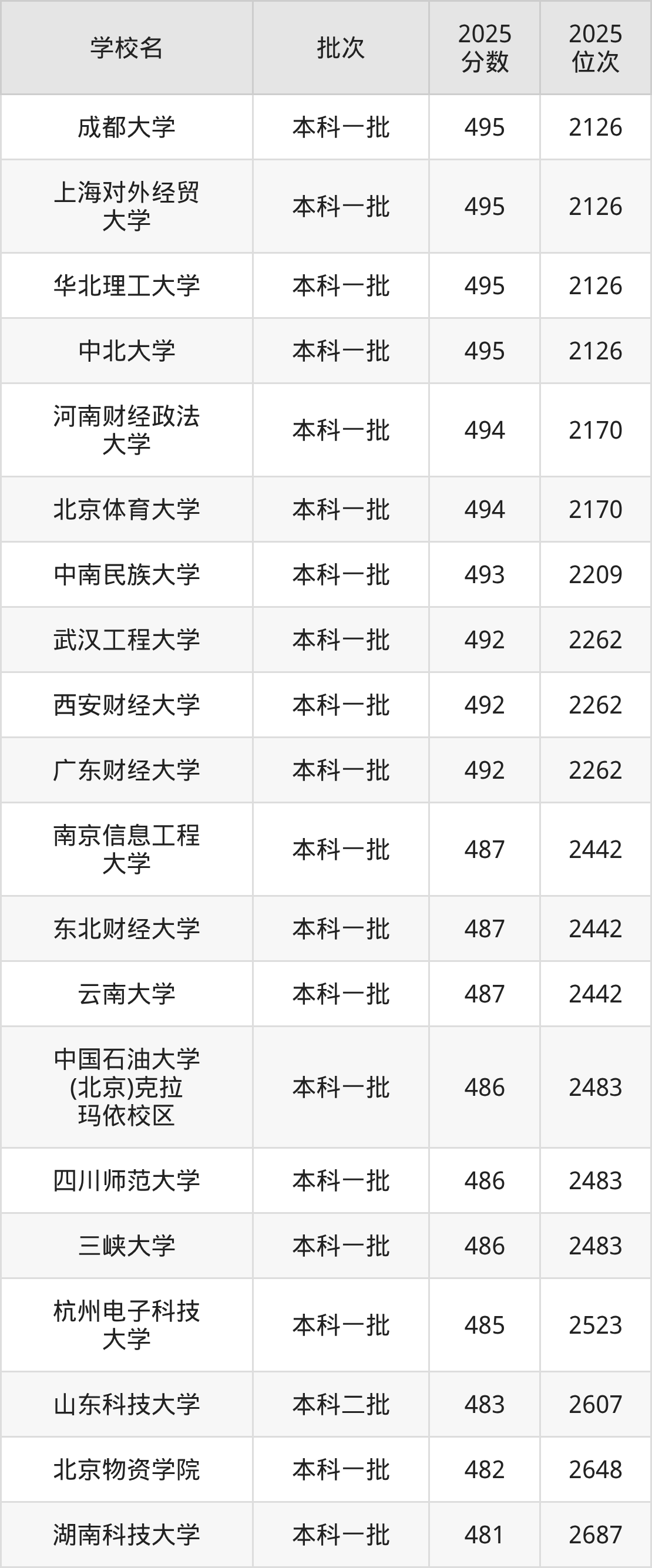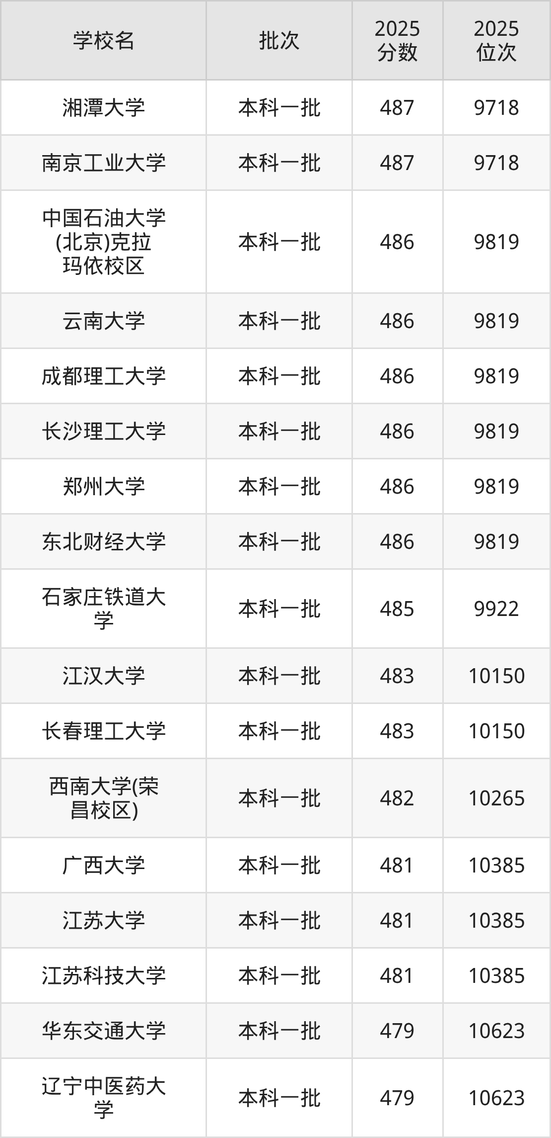 这些都是2026年高考理科10151名~10265名考生可以报考的大学,更多学校名单如下表所示: