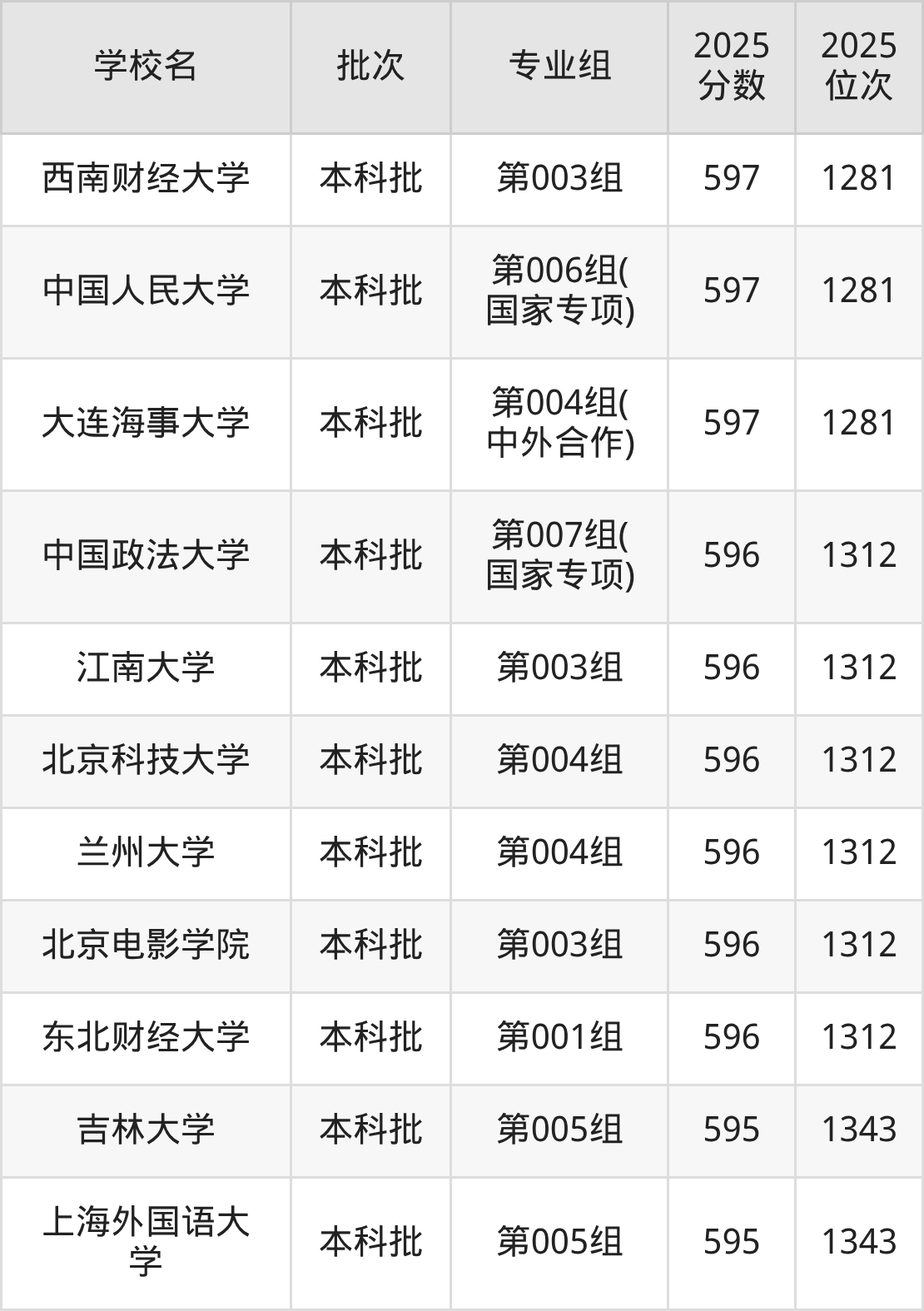 另外录取位次低于该区间(较稳妥)的有西南大学第009组(906名)、山东大学第001组(906名)等;录取位次高于该区间(可冲)的有北京外国语大学第003组(848名)、吉林大学第007组(848名)等。