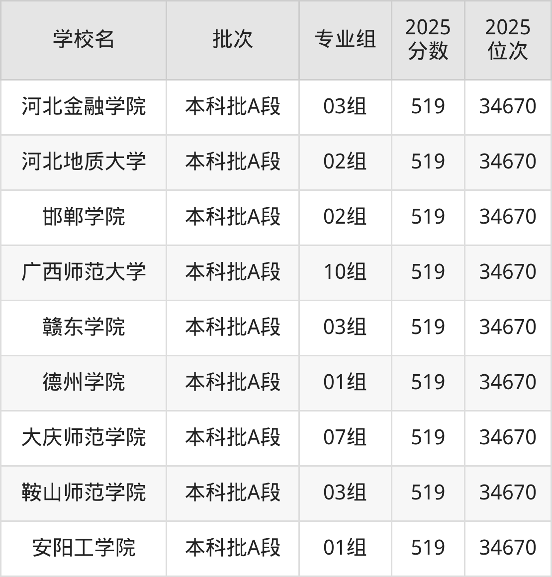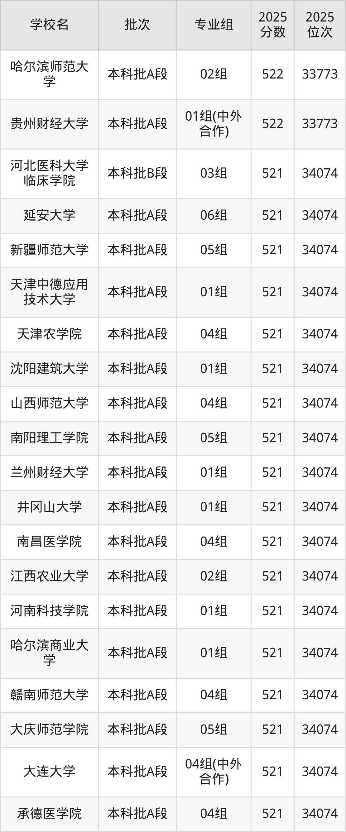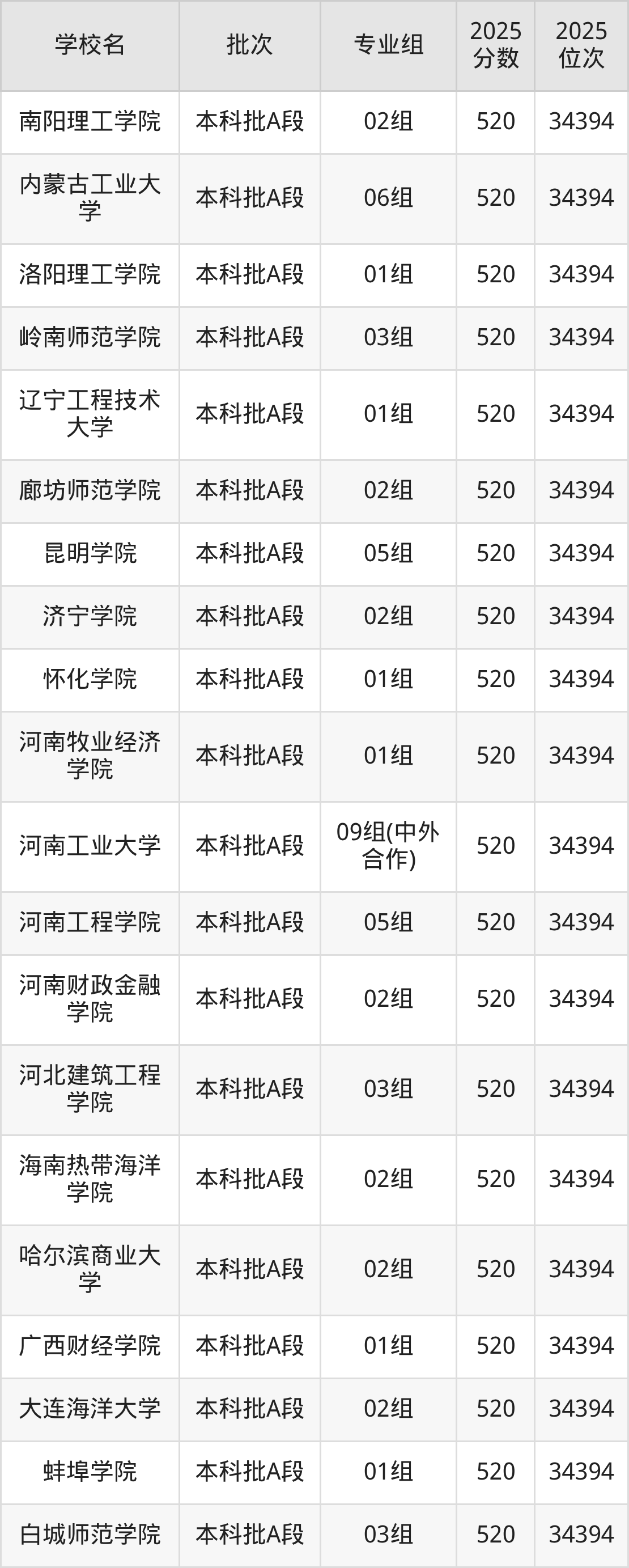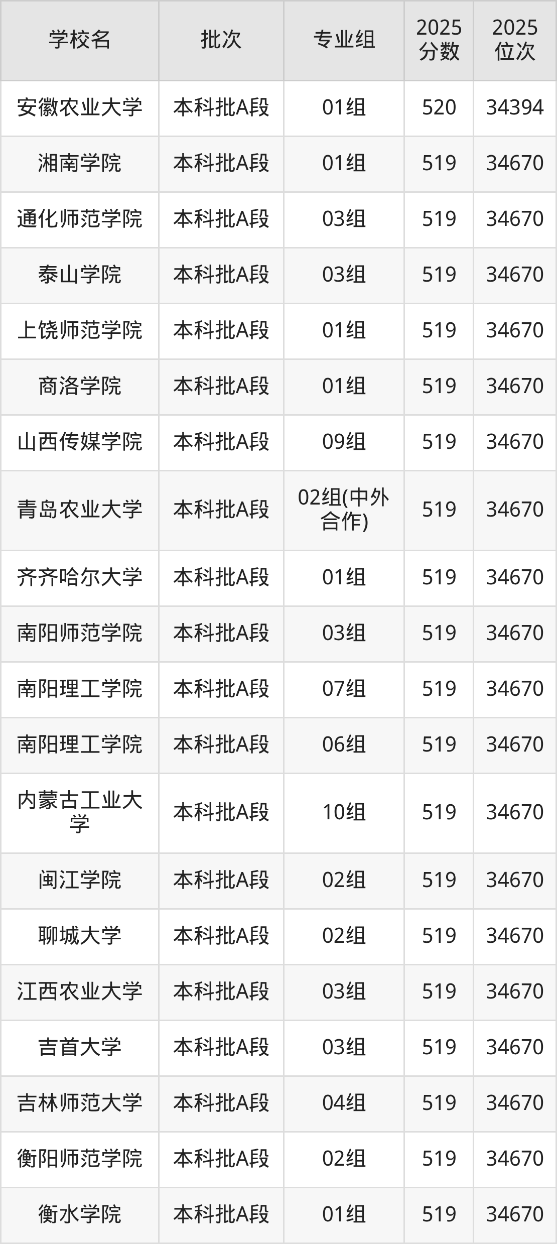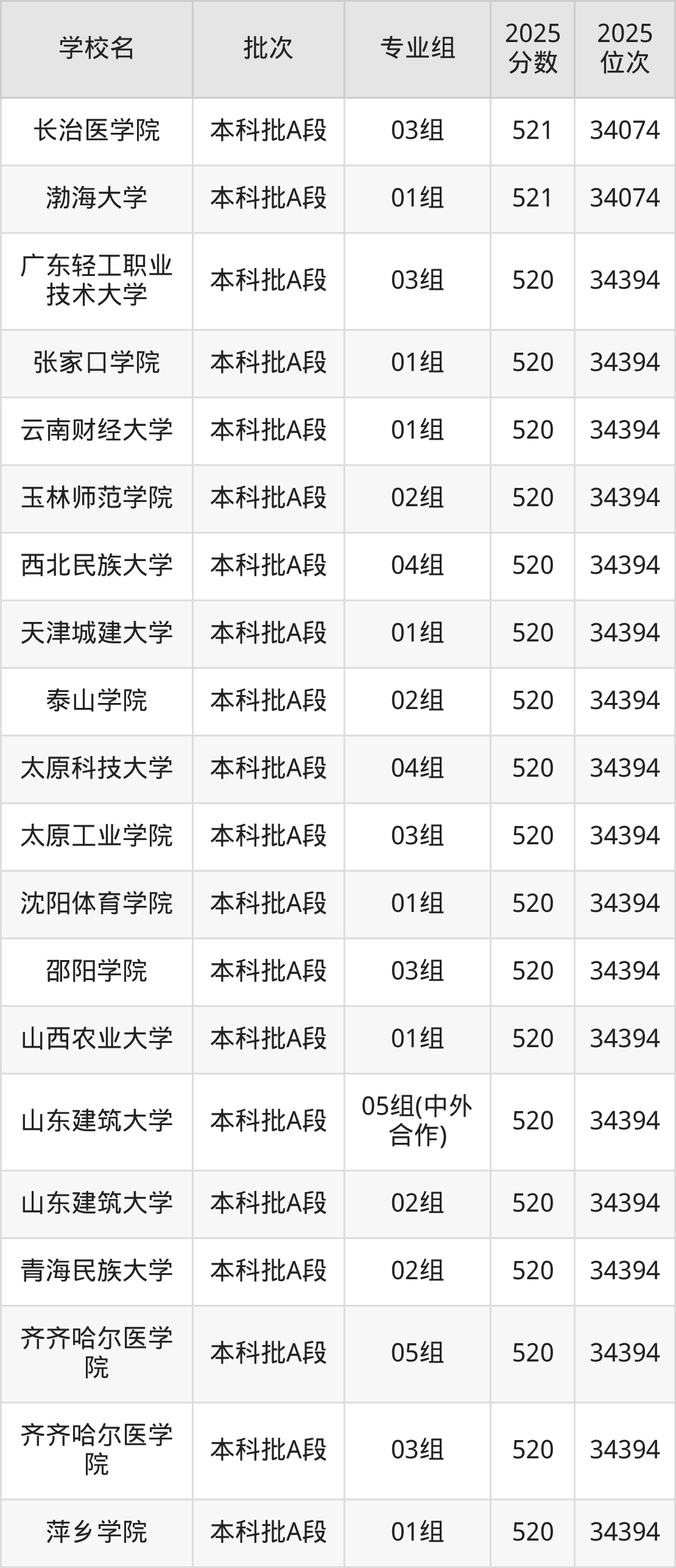 这些都是2026年高考34075名~34394名考生可以报考的大学,更多学校名单如下表所示: