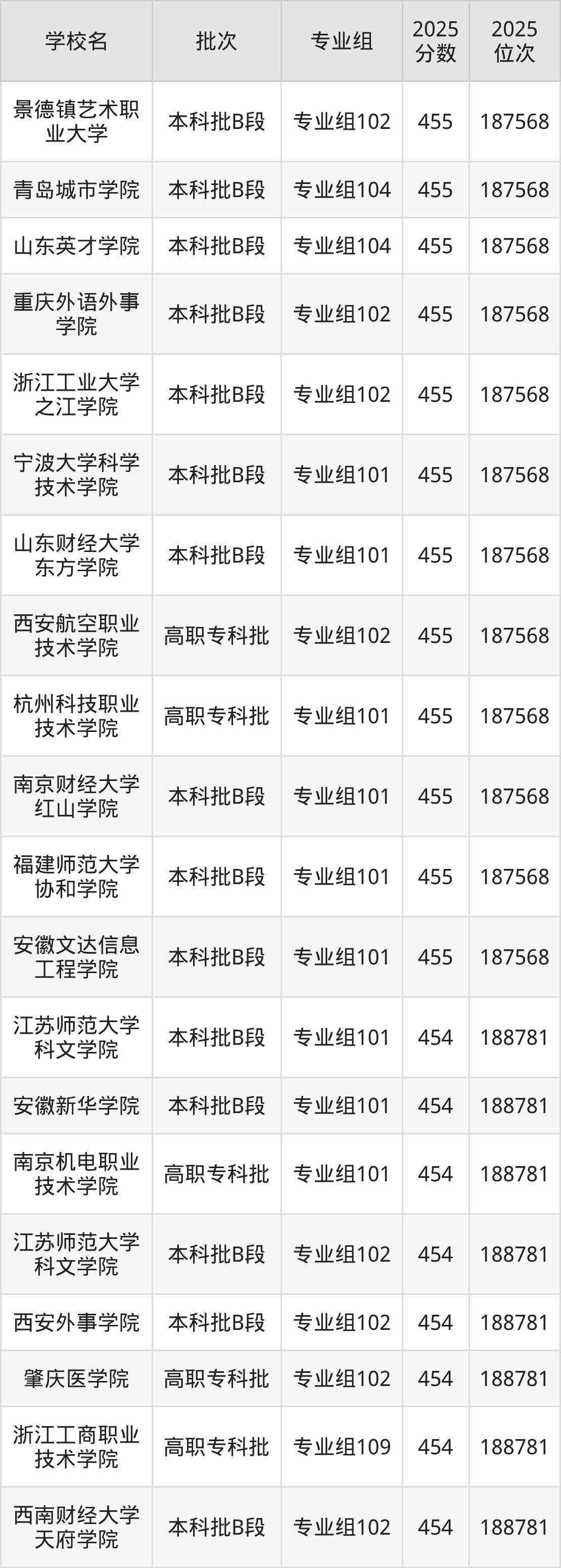 这些都是2026年高考物理类187569名~188781名考生可以报考的大学,更多学校名单如下表所示: