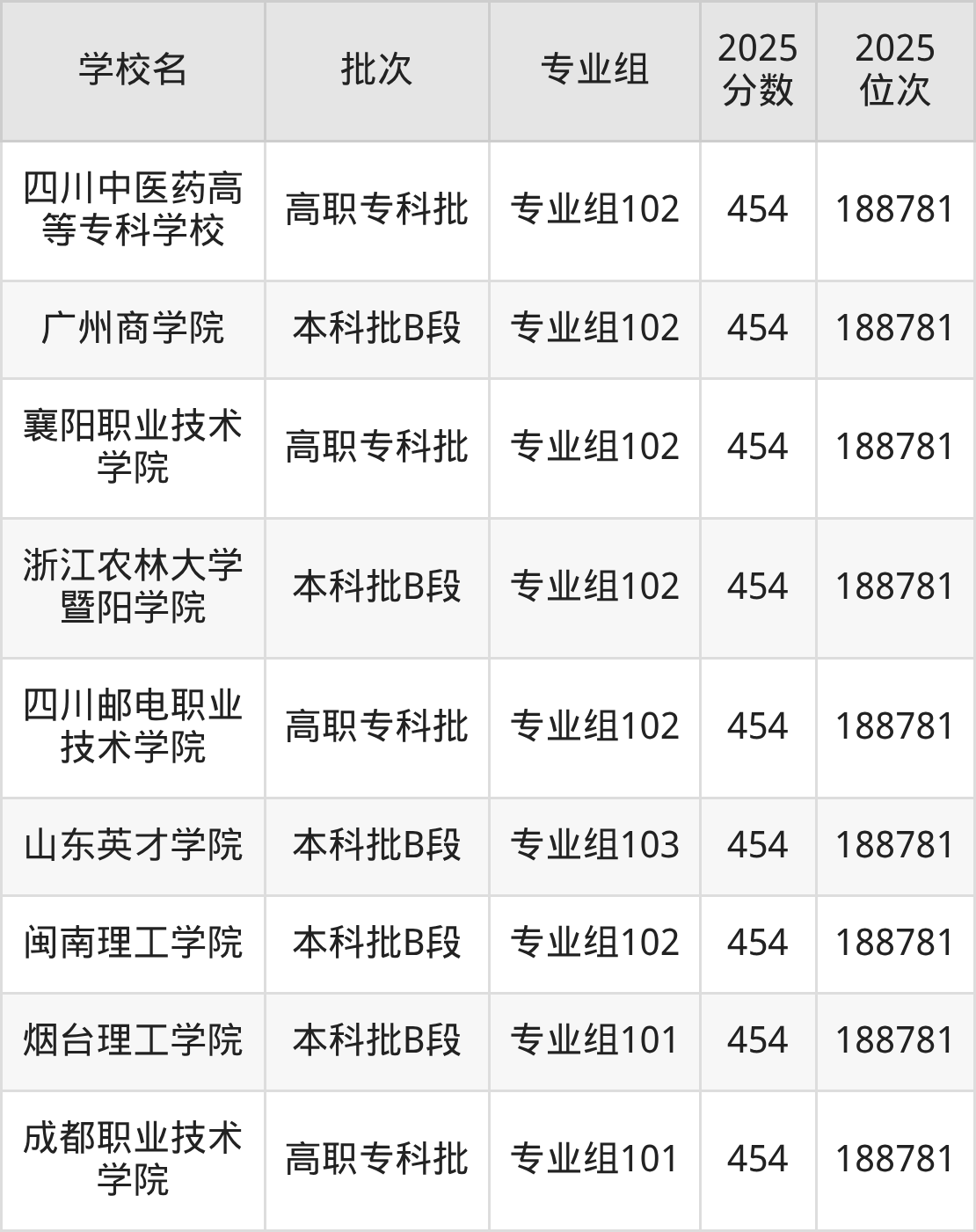 2025年四川高考物理类454分(187569名~188781名)能上的大学有成都职业技术学院专业组101、烟台理工学院专业组101、闽南理工学院专业组102、山东英才学院专业组103等。