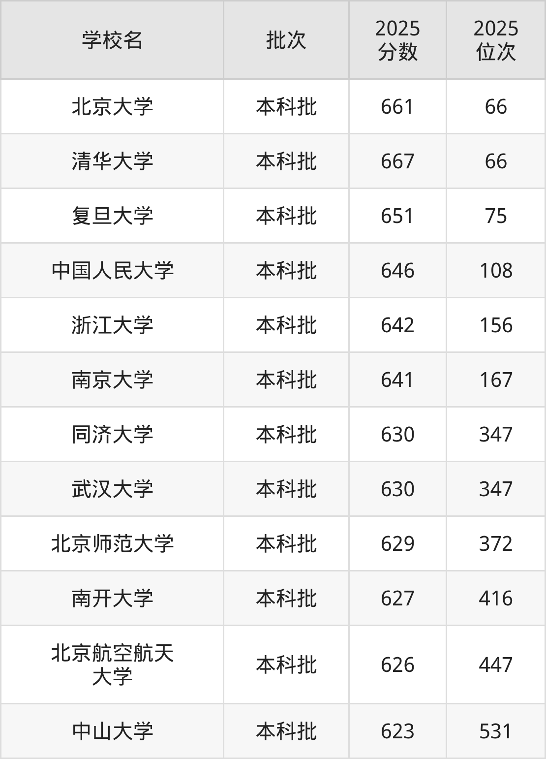 这些都是2026年高考历史类1名~66名考生可以报考的大学,更多学校名单如下表所示: