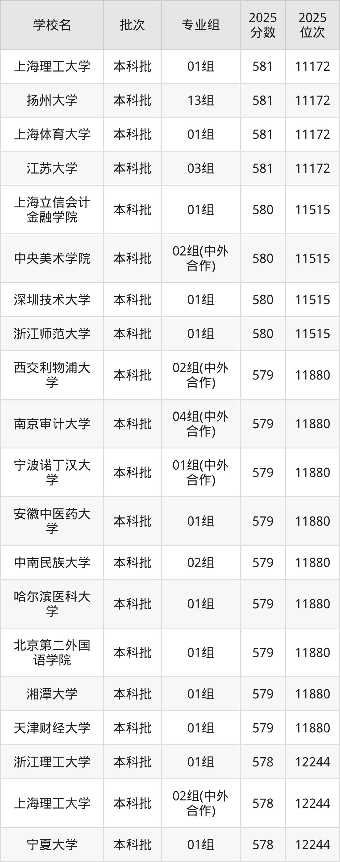 这些都是2026年高考历史类11516名~11880名考生可以报考的大学,更多学校名单如下表所示: