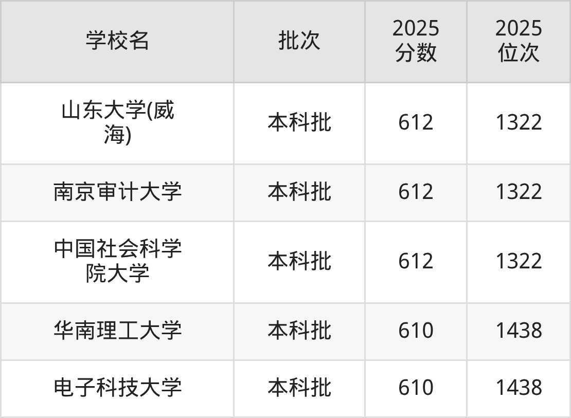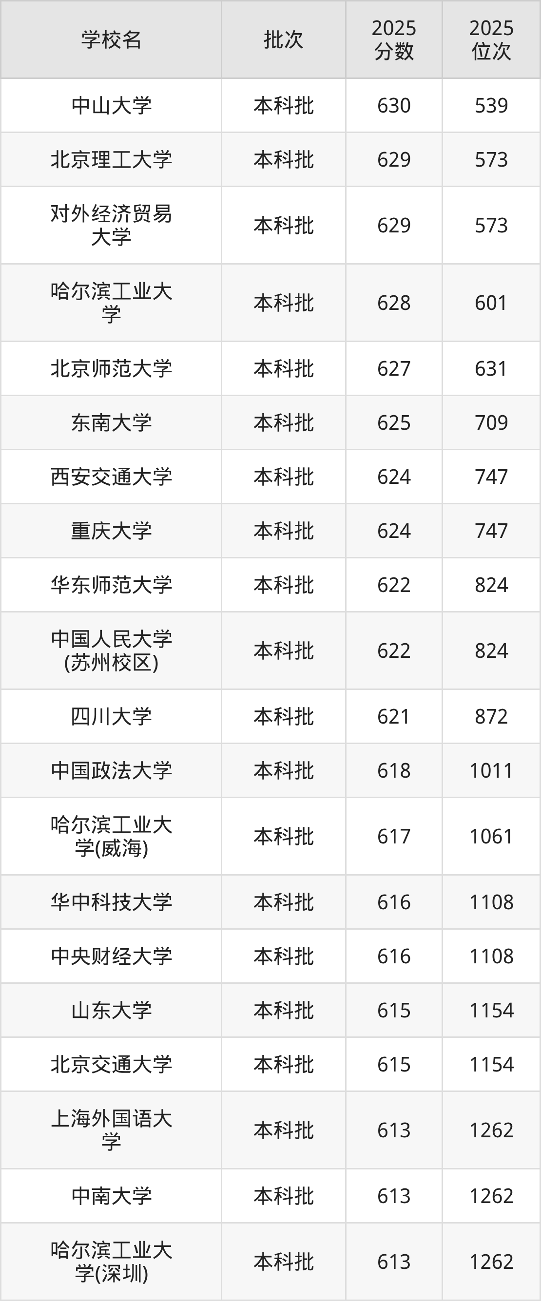 由于高考录取分数线历年波动较大,因此本文以该分数对应的位次排名为大家整理能上的大学名单。