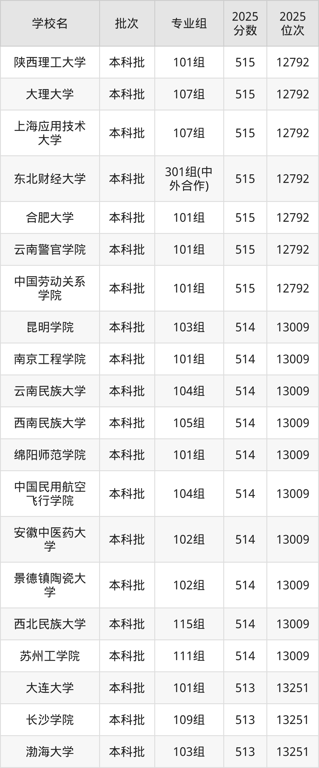这些都是2026年高考历史类13252名~13483名考生可以报考的大学,更多学校名单如下表所示: