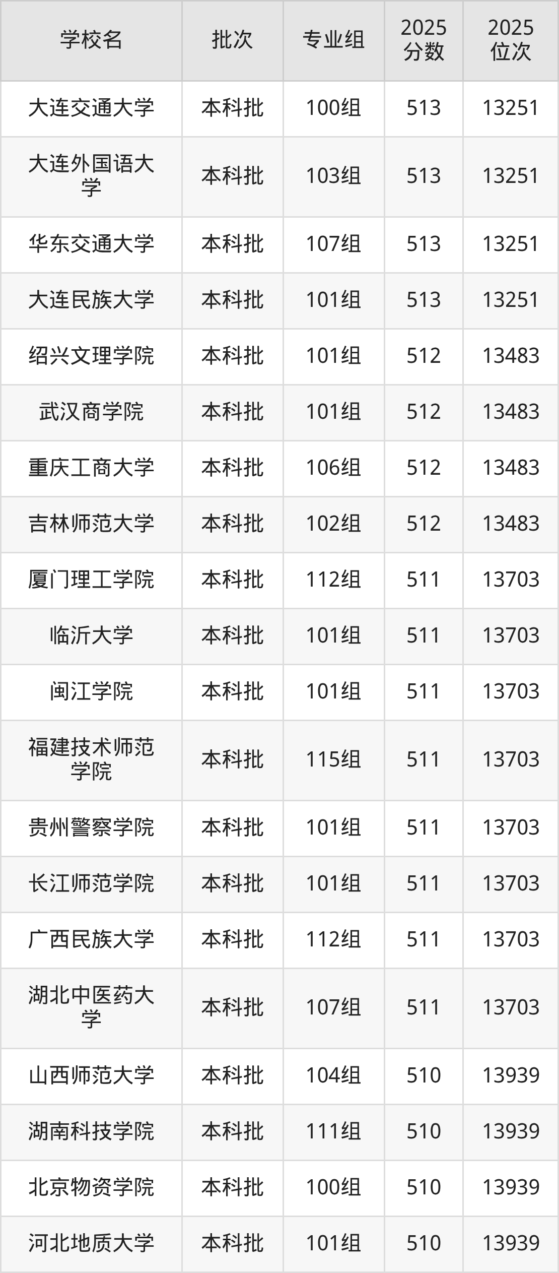另外录取位次低于该区间(较稳妥)的有贵州警察学院101组(13703名)、厦门理工学院112组(13703名)等;录取位次高于该区间(可冲)的有长沙学院109组(13251名)、大连民族大学101组(13251名)等。
