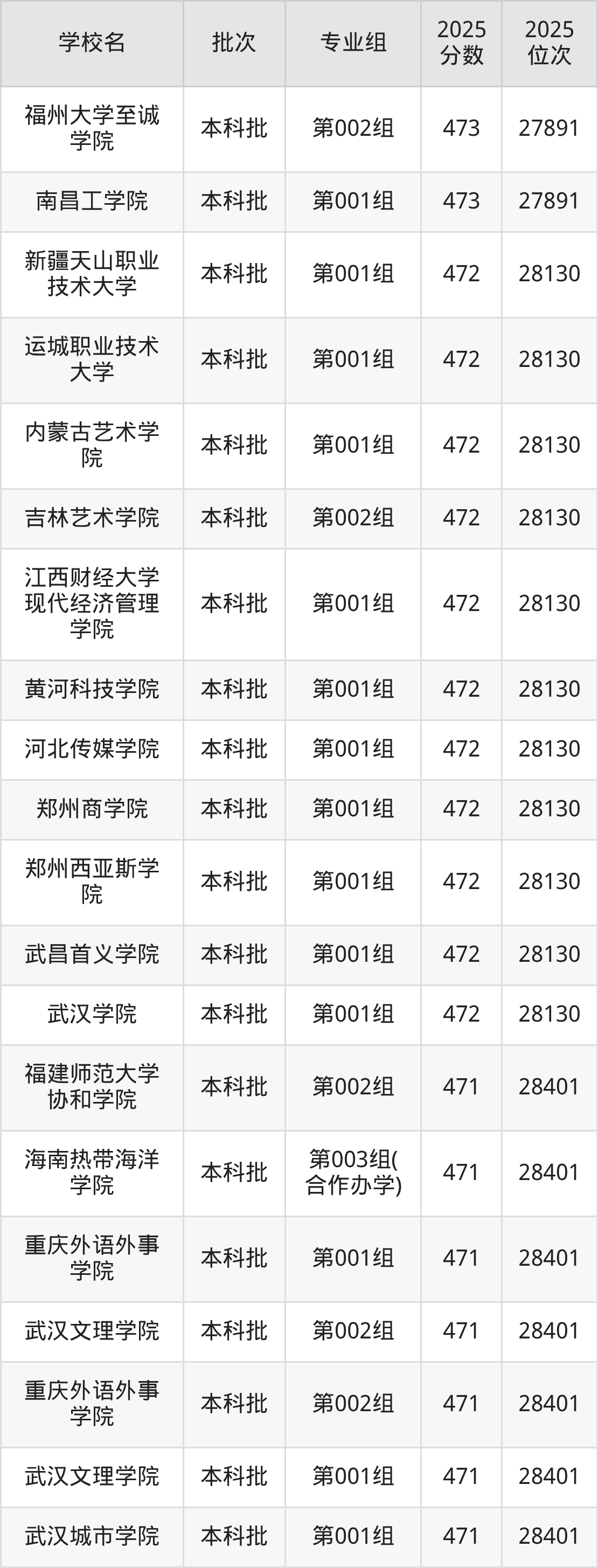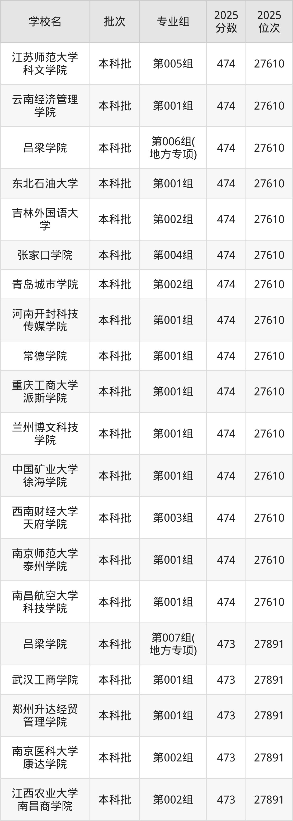 这些都是2026年高考历史类27892名~28130名考生可以报考的大学,更多学校名单如下表所示: