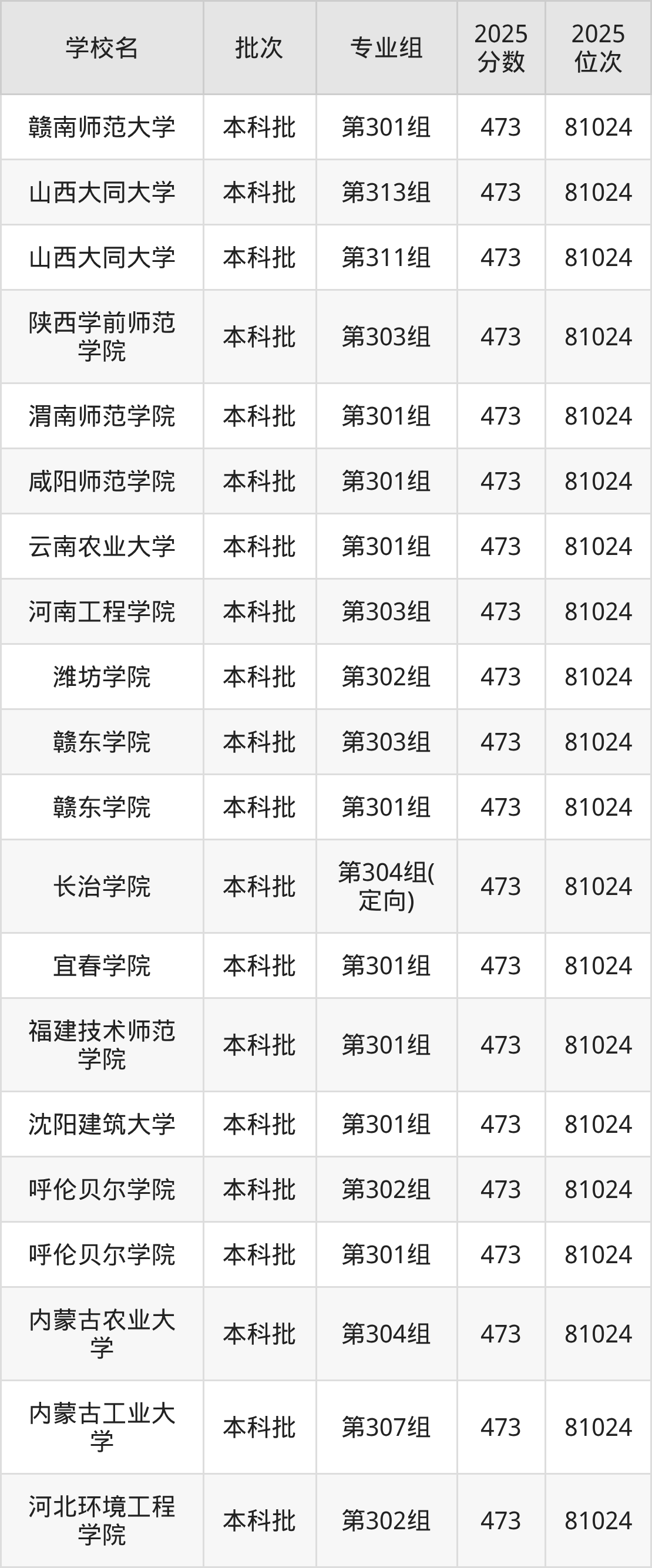 这些都是2026年高考物理类81025名~81835名考生可以报考的大学,更多学校名单如下表所示: