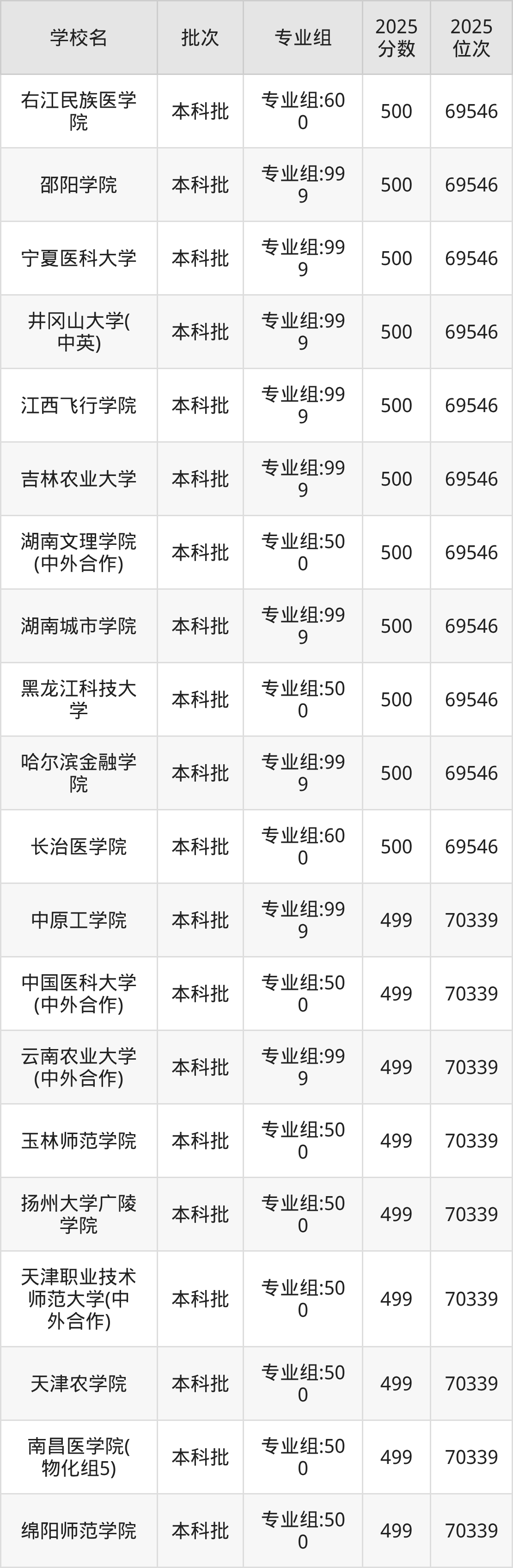 这些都是2026年高考物理类69547名~70339名考生可以报考的大学,更多学校名单如下表所示: