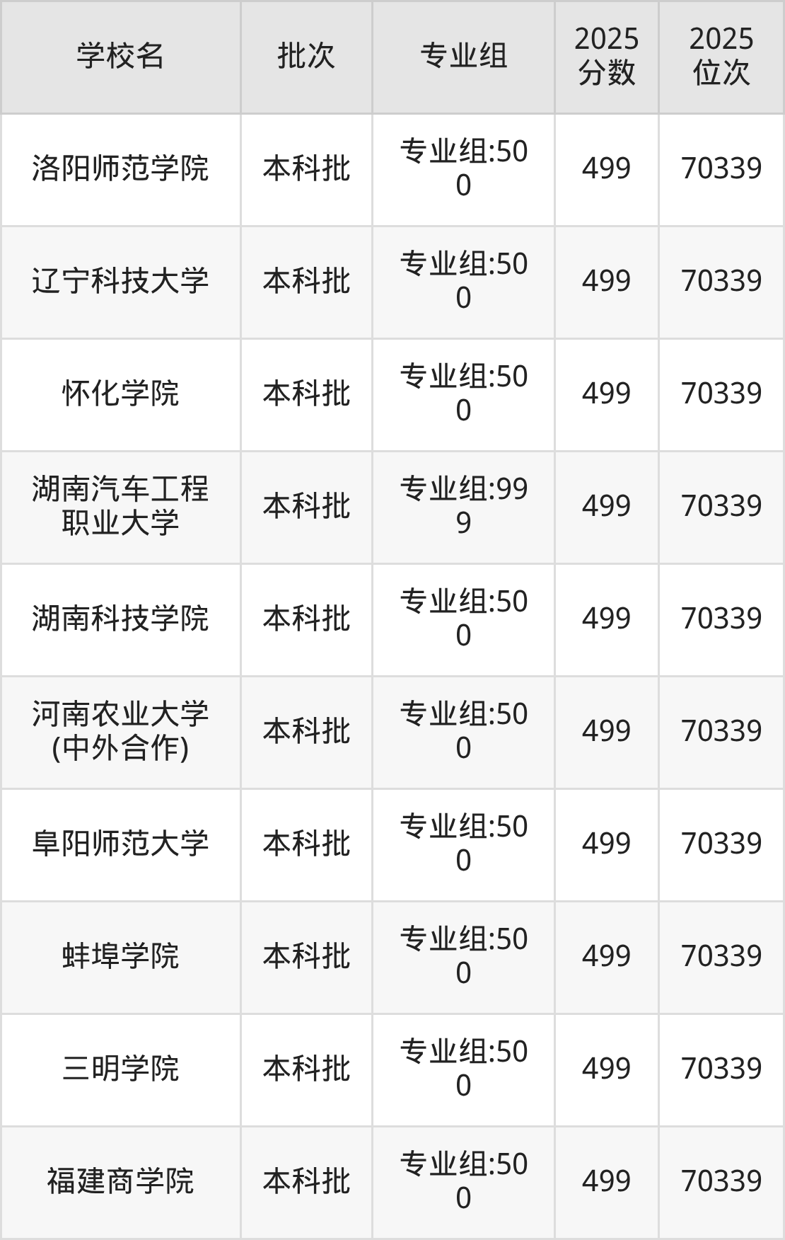 2025年福建高考物理类499分(69547名~70339名)能上的大学有福建商学院专业组:500、三明学院专业组:500、蚌埠学院专业组:500、阜阳师范大学专业组:500等。