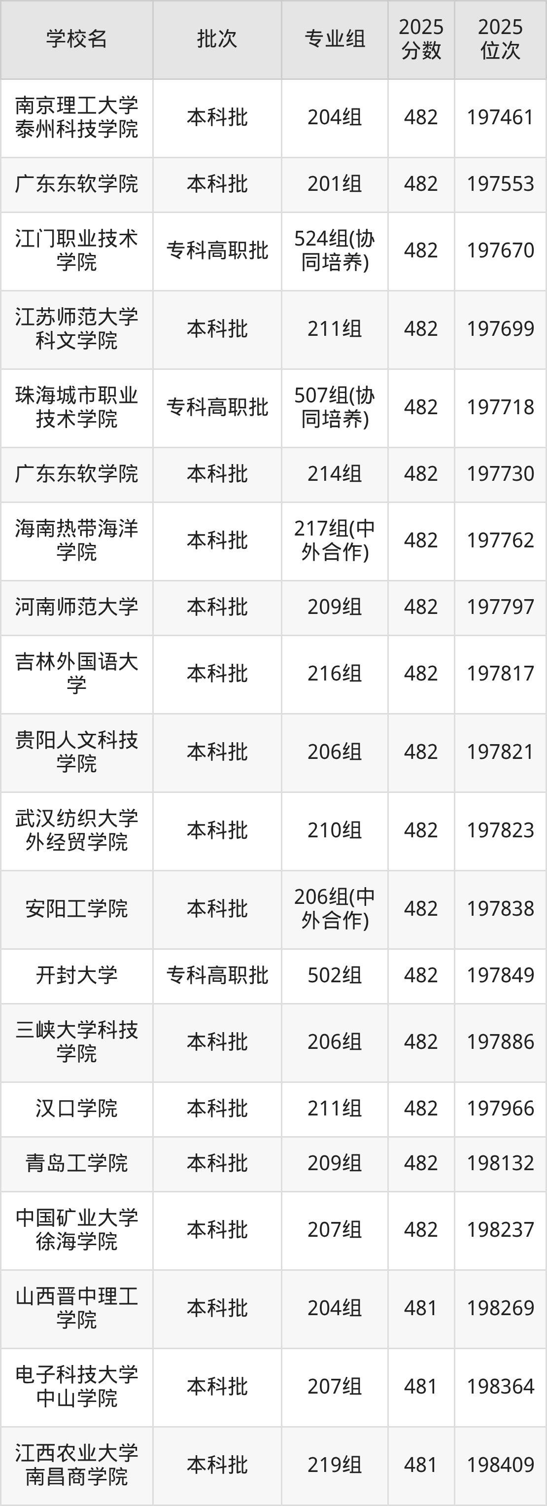 2025年广东高考物理类482分(196472名~198253名)能上的大学有河南师范大学209组、新疆和田学院215组、长沙医学院204组、吉林外国语大学216组等。