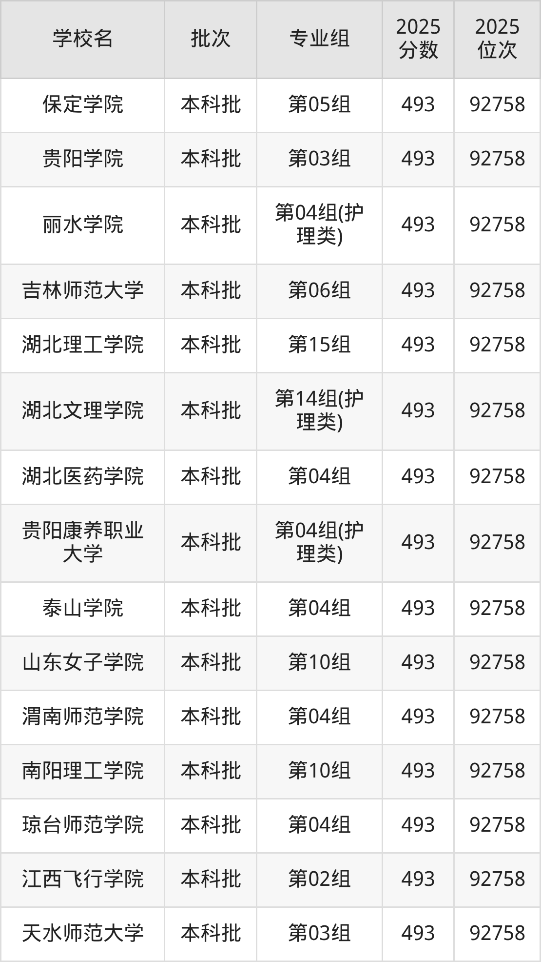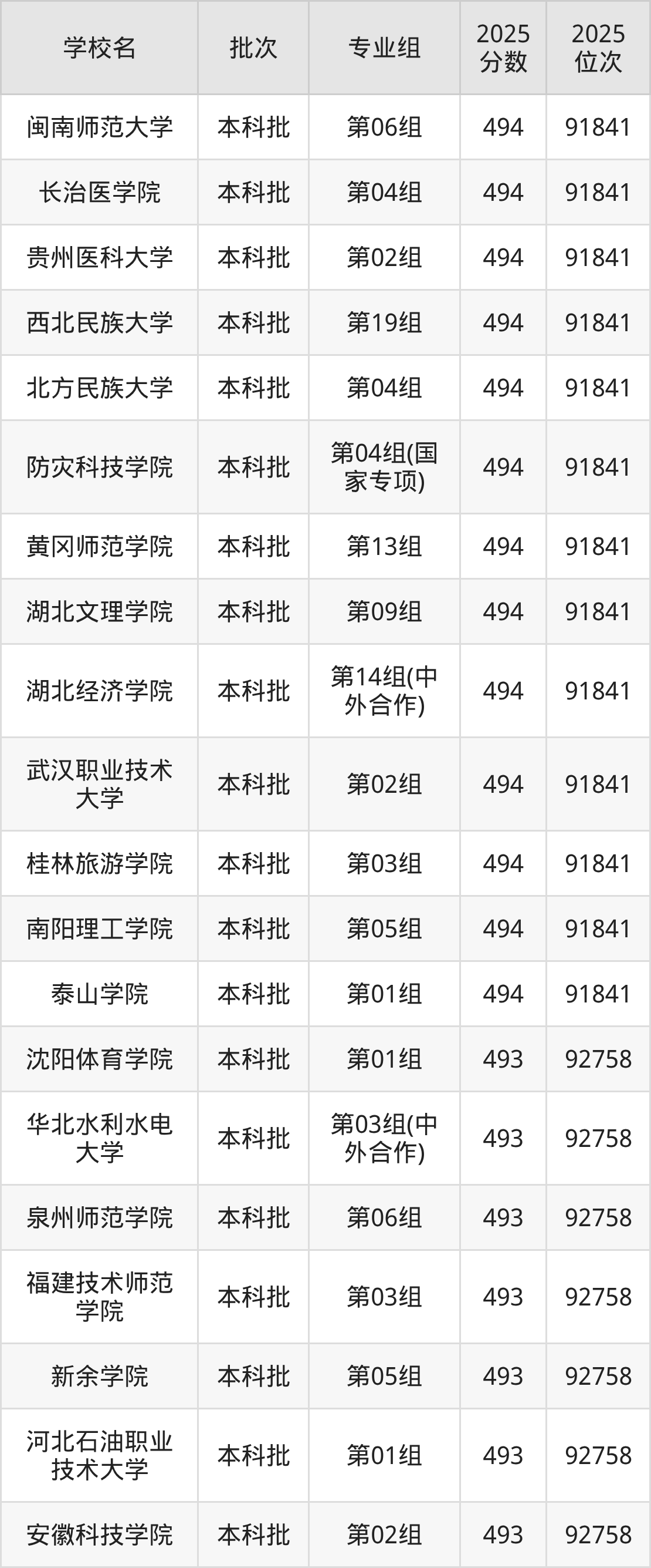 2025年湖北高考物理类493分(91842名~92758名)能上的大学有湖北医药学院第04组、湖北文理学院第14组(护理类)、湖北理工学院第15组、保定学院第05组等。