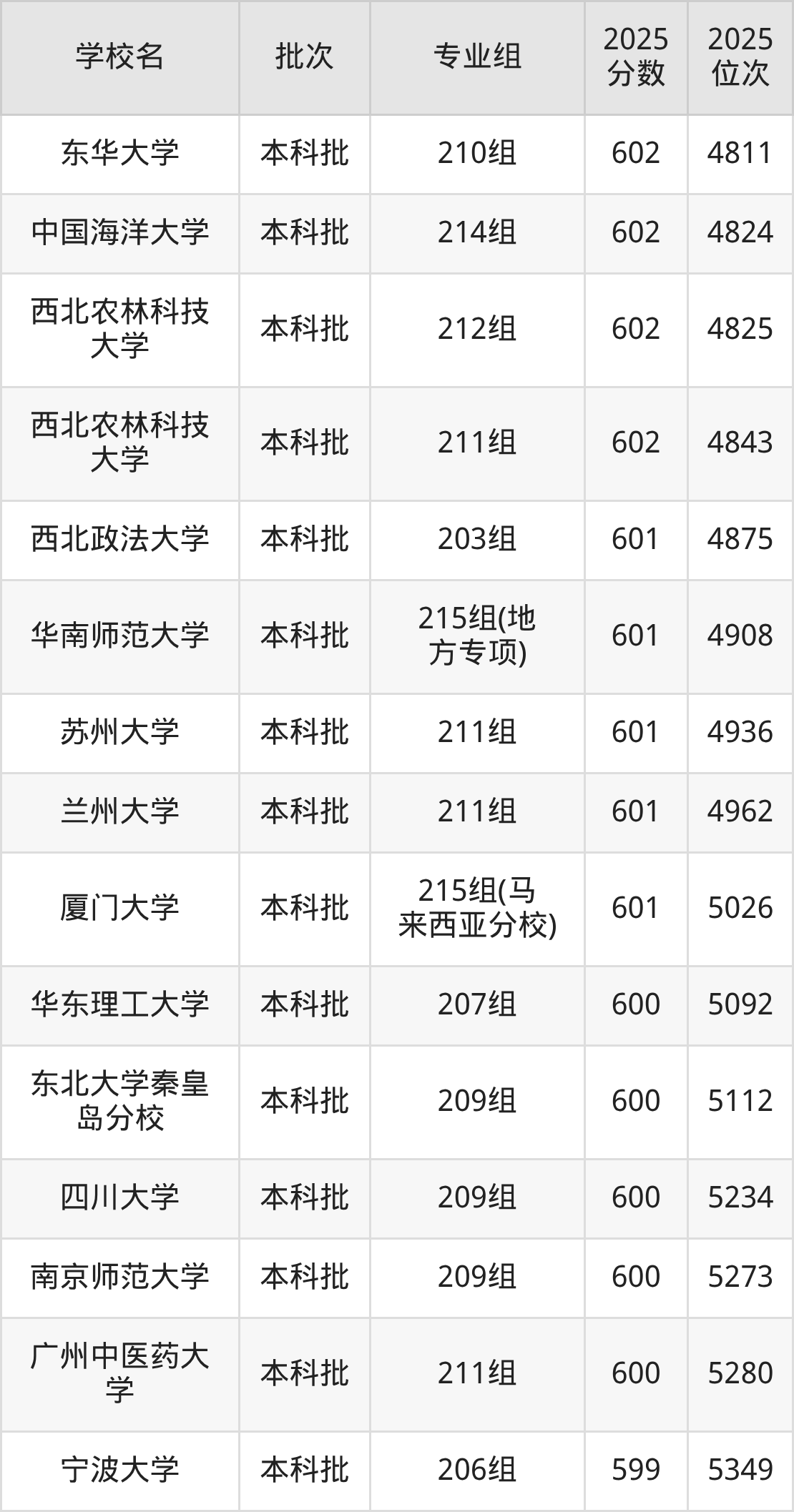 另外录取位次低于该区间(较稳妥)的有西北政法大学203组(4875名)、华南师范大学215组(地方专项)(4908名)等;录取位次高于该区间(可冲)的有大连理工大学207组(4617名)、暨南大学204组(4615名)等。