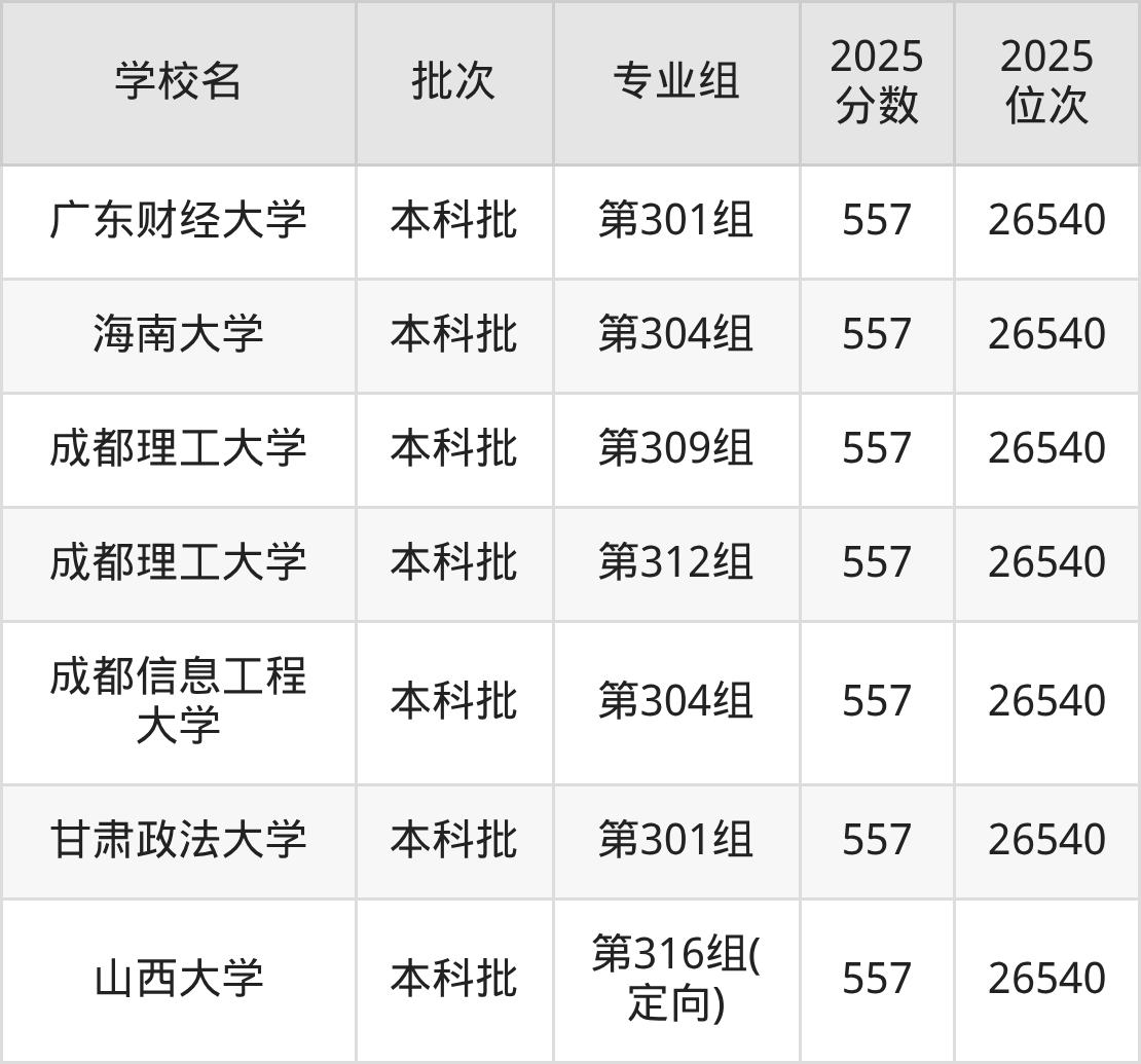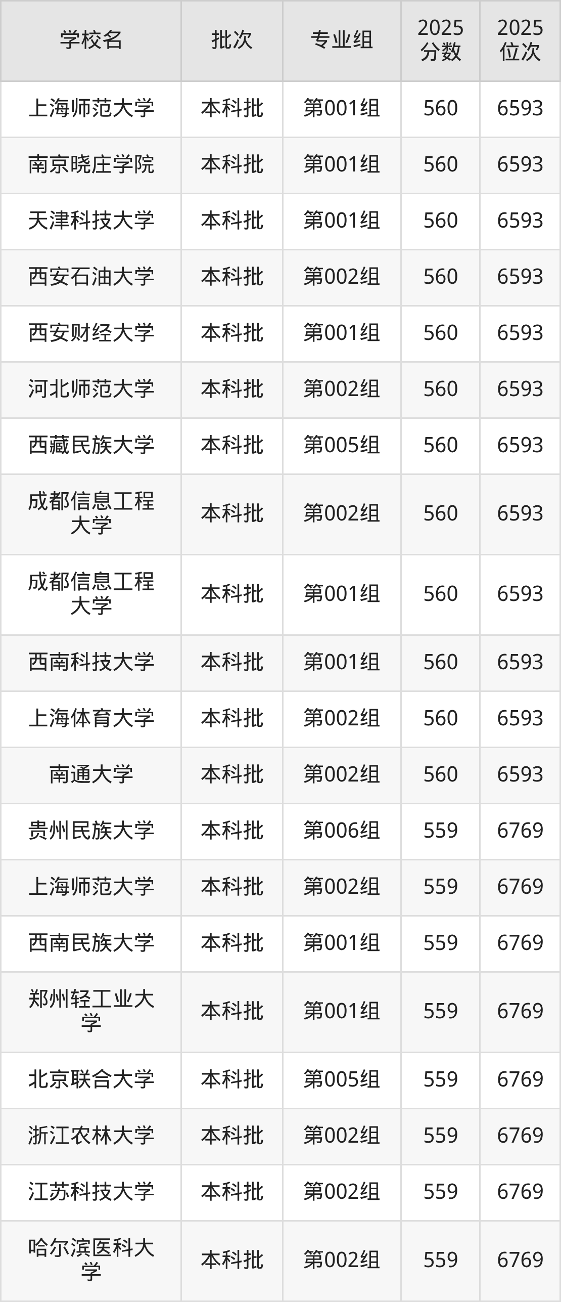 这些都是2026年高考历史类6770名~6960名考生可以报考的大学,更多学校名单如下表所示: