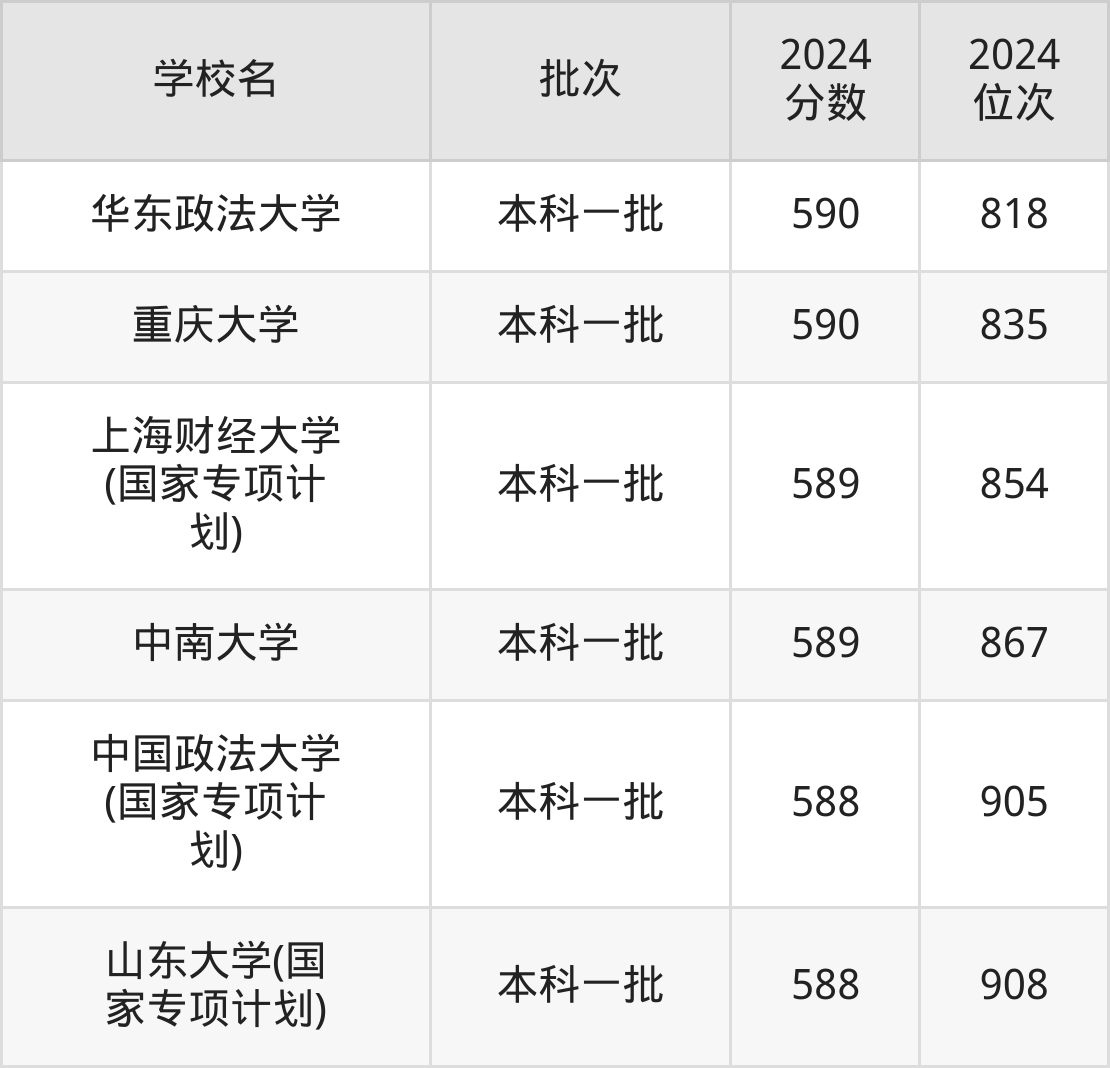 这些都是2025年高考文科436名~460名考生可以报考的大学,更多学校名单如下表所示: