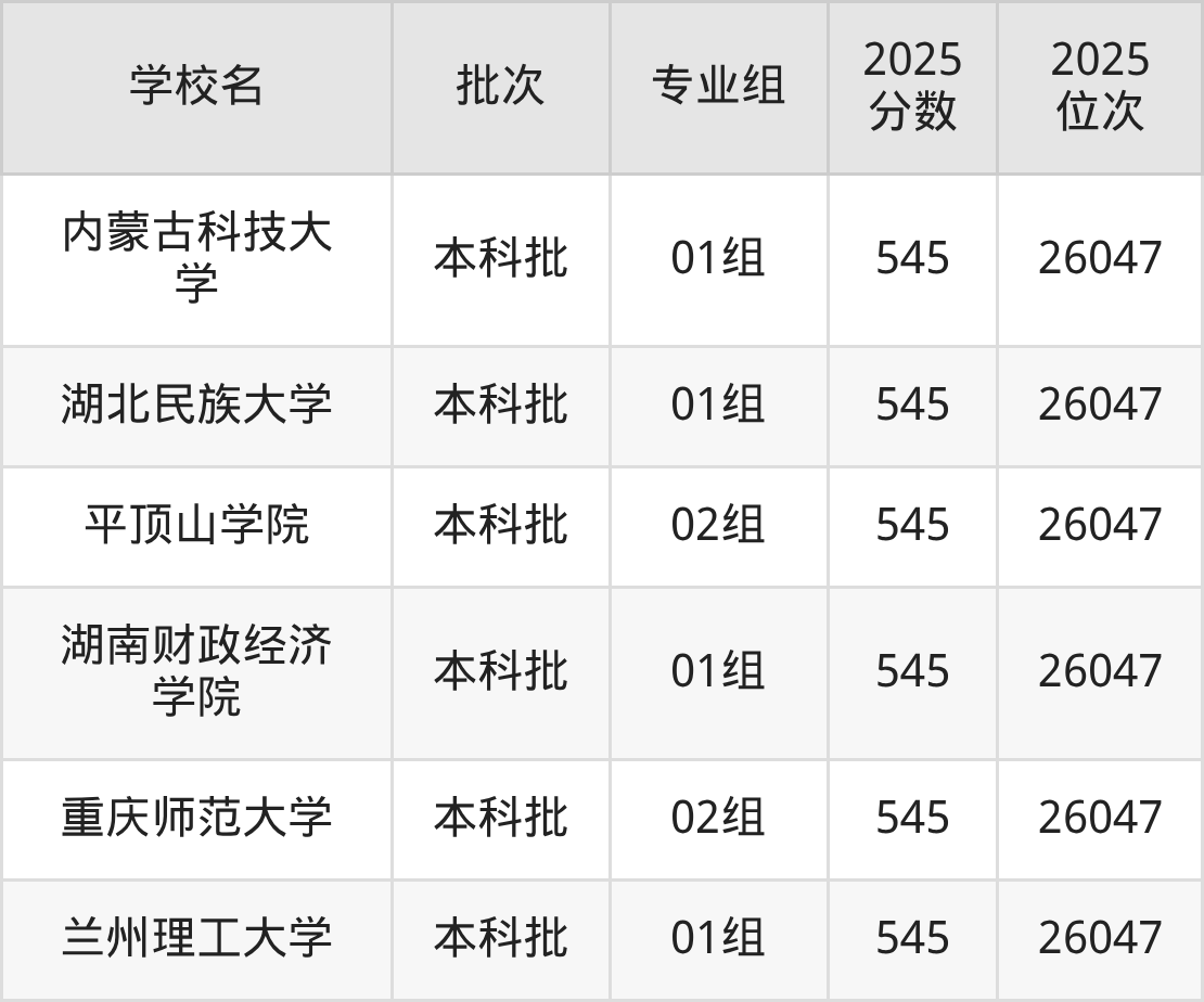 这些都是2026年高考历史类25116名~25582名考生可以报考的大学,更多学校名单如下表所示: