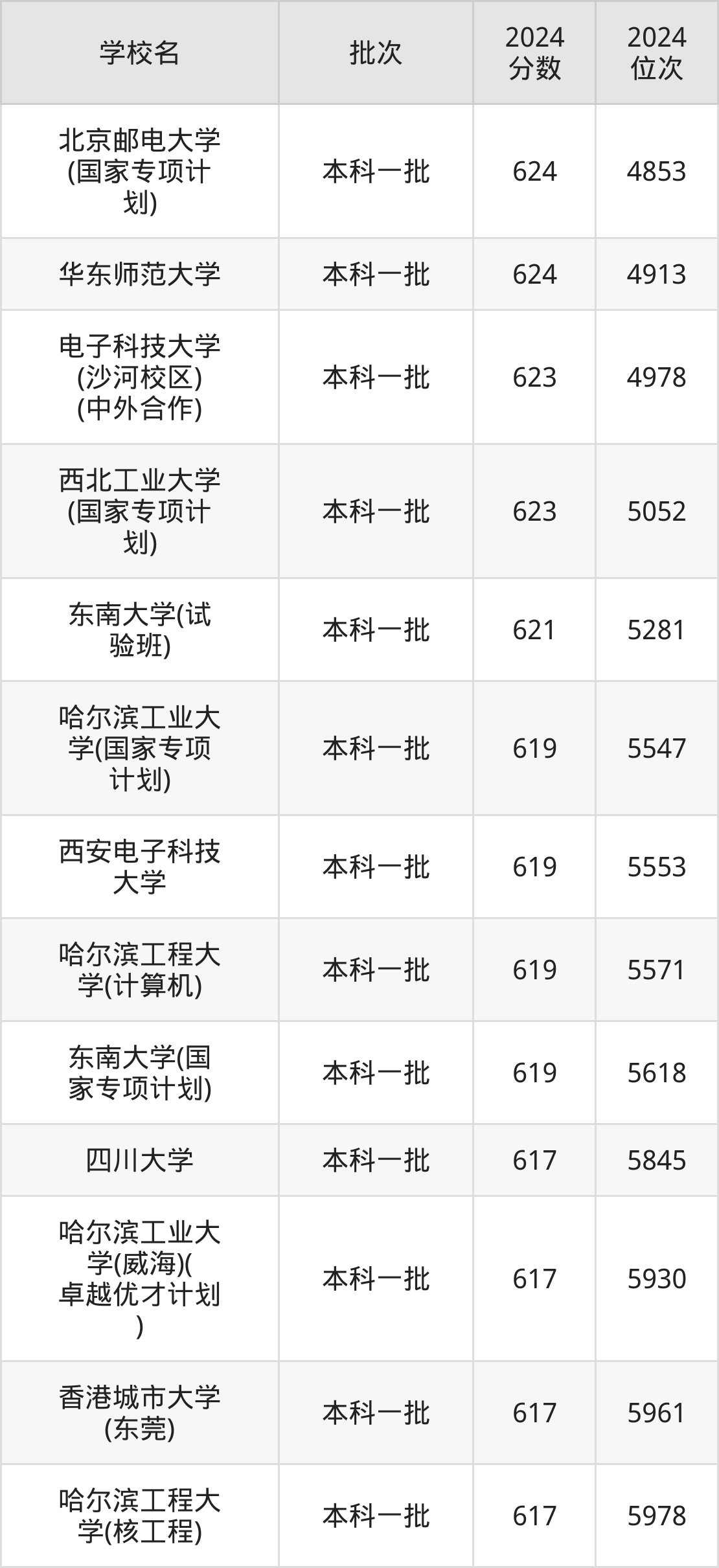 这些都是2025年高考理科5353名~5510名考生可以报考的大学,更多学校名单如下表所示: