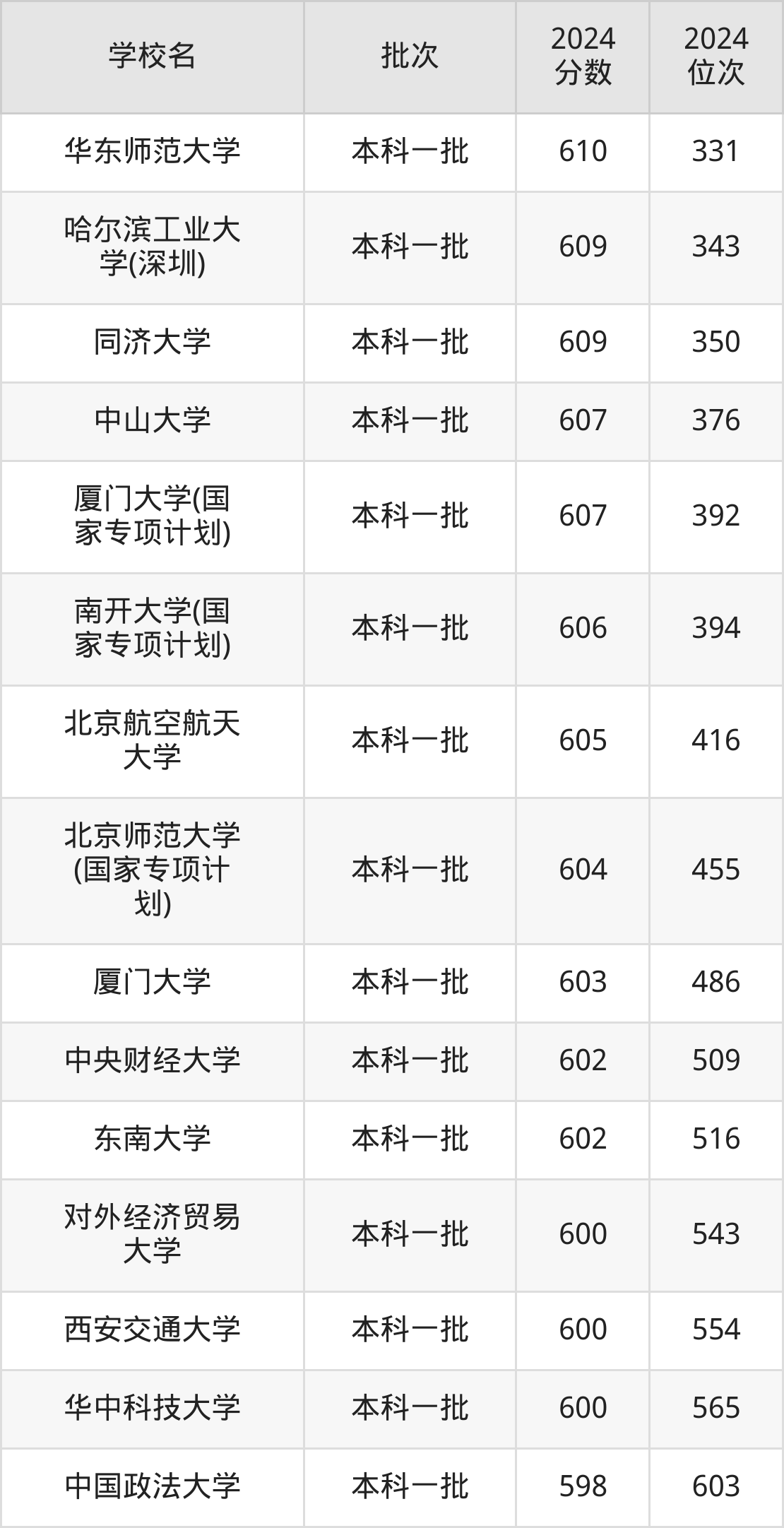 另外录取位次低于该区间(较稳妥)的有上海交通大学(国家专项计划)(189名)、北京师范大学(247名)等;录取位次高于该区间(可冲)的有南京大学(142名)、复旦大学(国家专项计划)(130名)等。