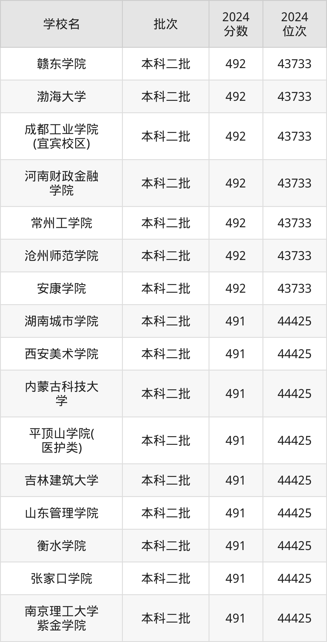 2024年河南高考文科491分(43734名~44425名)能上的大学有内蒙古科技大学、衡水学院、吉林建筑大学、湖南城市学院等。