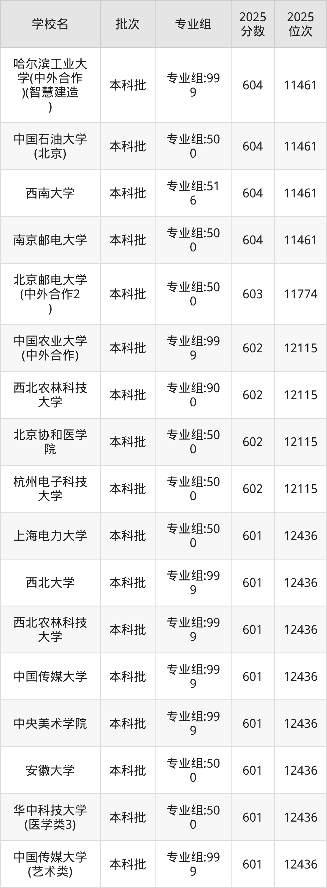 这些都是2026年高考物理类11775名~12115名考生可以报考的大学,更多学校名单如下表所示: