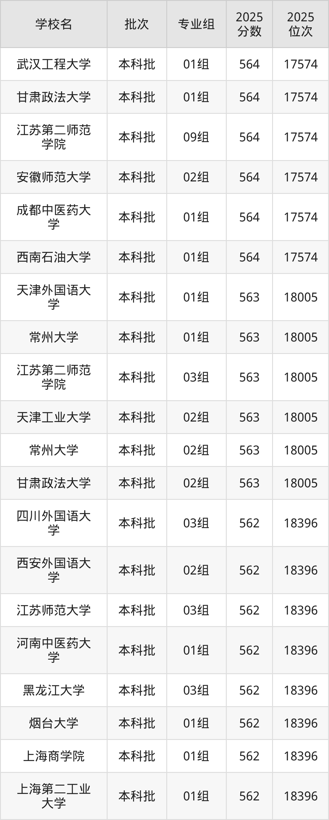 这些都是2026年高考历史类18006名~18396名考生可以报考的大学,更多学校名单如下表所示: