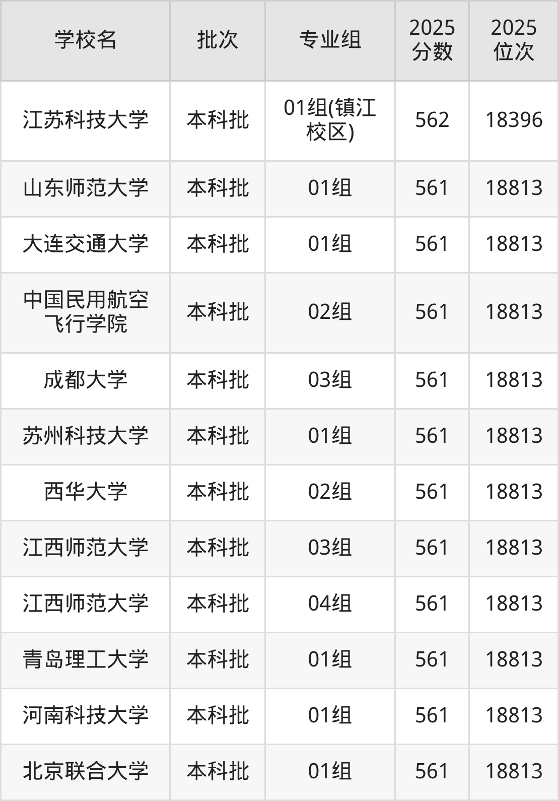 2025年江苏高考历史类562分(18006名~18396名)能上的大学有江苏师范大学03组、江苏科技大学01组(镇江校区)、上海第二工业大学01组、上海商学院01组等。