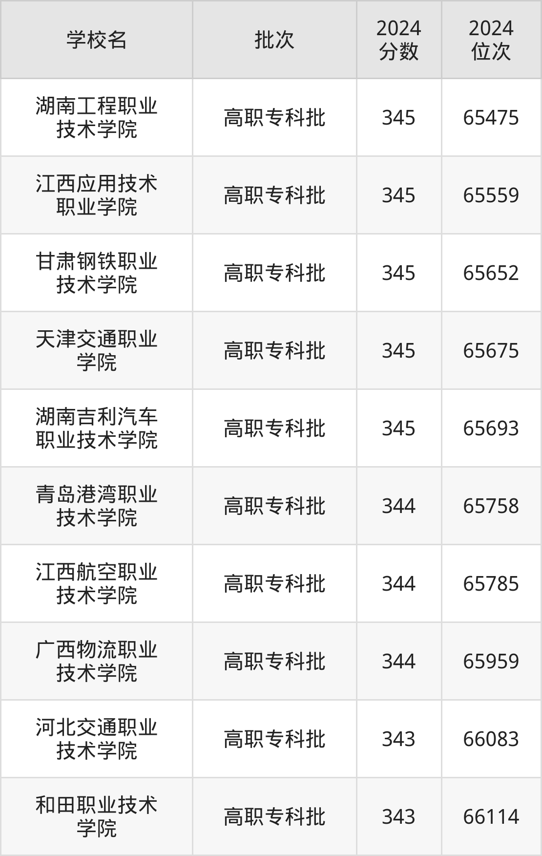 2024年陕西高考文科343分(65960名~66207名)能上的大学有河北交通职业技术学院、和田职业技术学院。