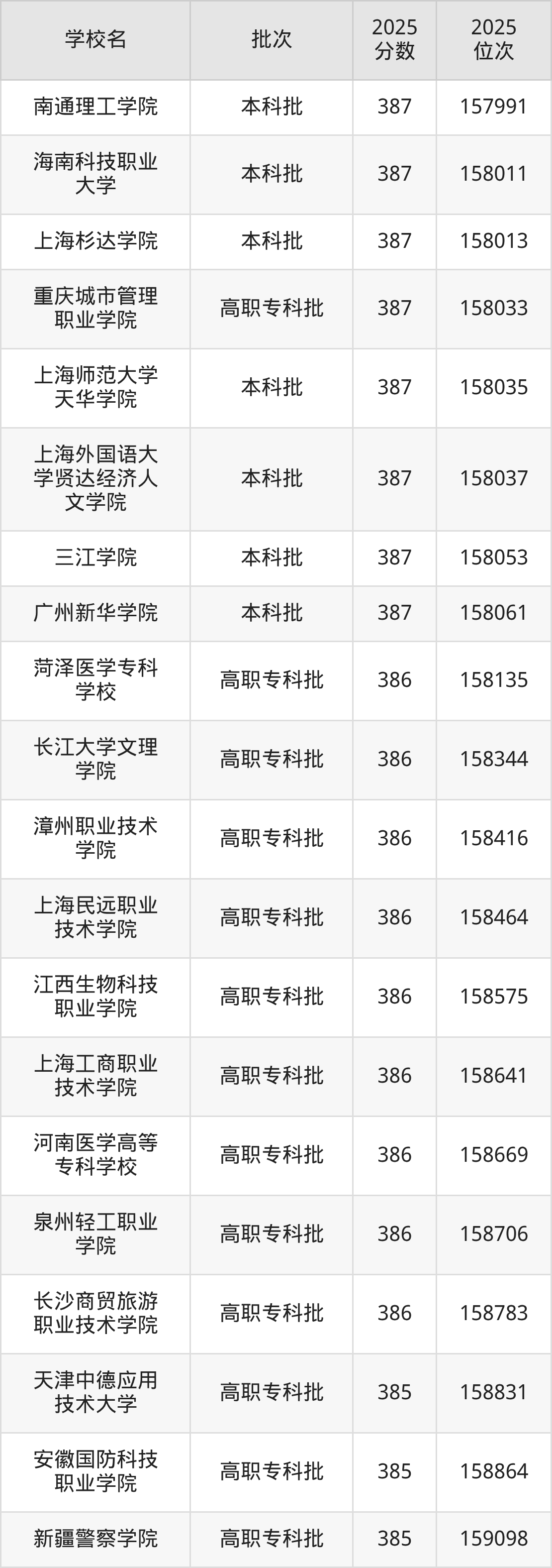 2025年贵州高考物理类386分(158062名~158824名)能上的大学有泉州轻工职业学院、上海工商职业技术学院、长沙商贸旅游职业技术学院、上海民远职业技术学院等。