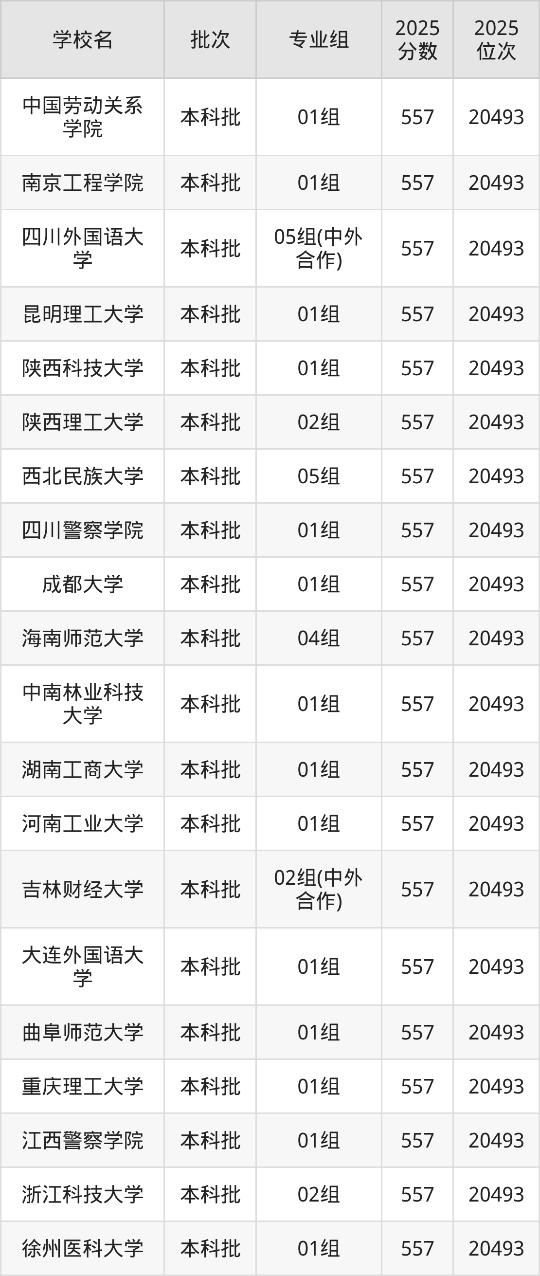 这些都是2026年高考历史类20941名~21405名考生可以报考的大学,更多学校名单如下表所示: