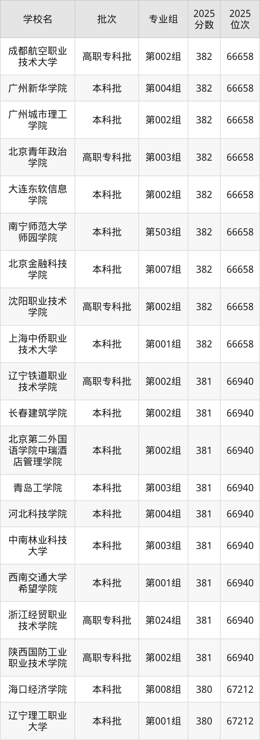 这些都是2026年高考物理类66941名~67212名考生可以报考的大学,更多学校名单如下表所示: