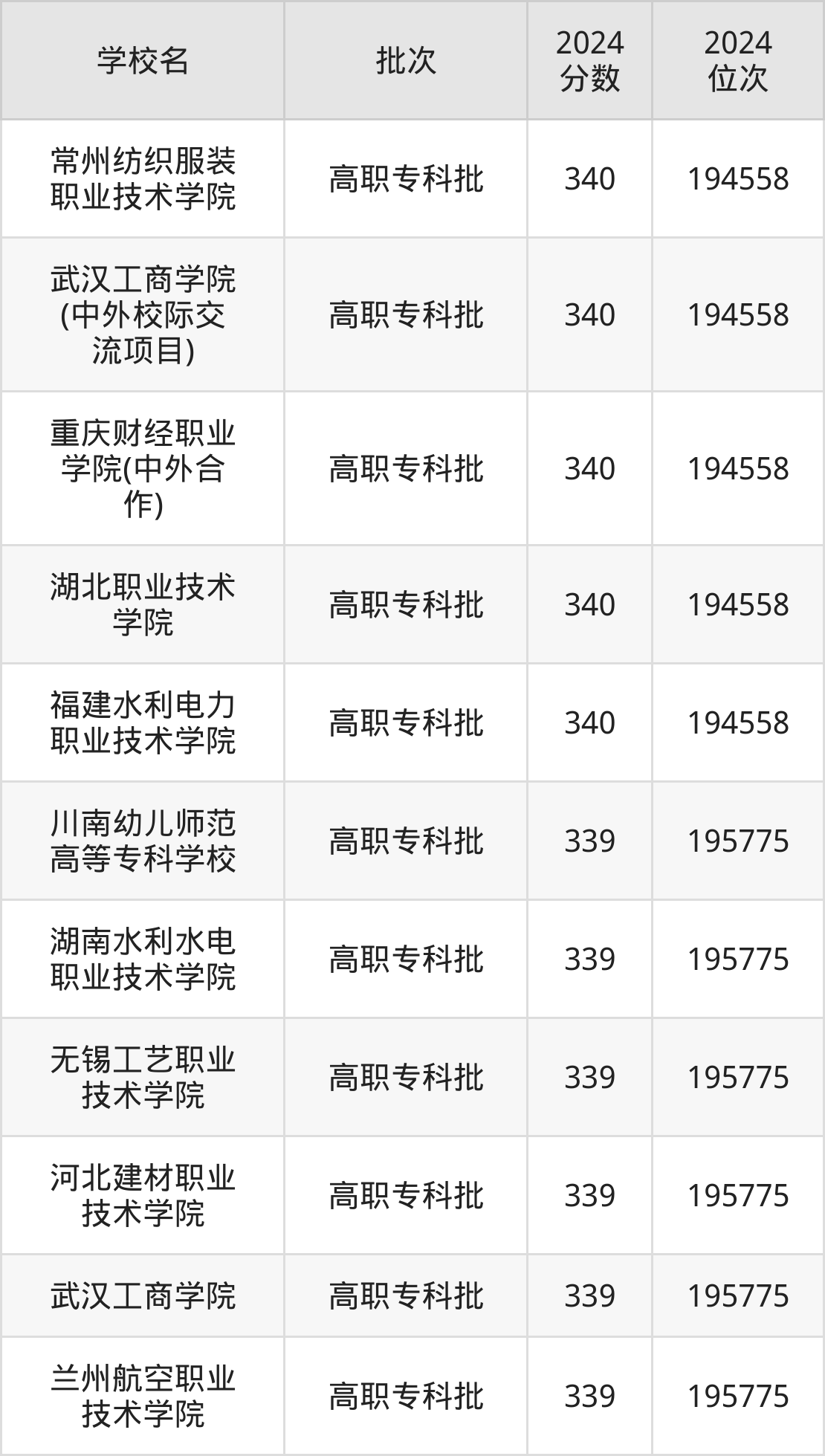 另外录取位次低于该区间(较稳妥)的有江西水利职业学院(197027名)、山东科技职业学院(197027名)等;录取位次高于该区间(可冲)的有武汉工商学院(中外校际交流项目)(194558名)、常州纺织服装职业技术学院(194558名)等。