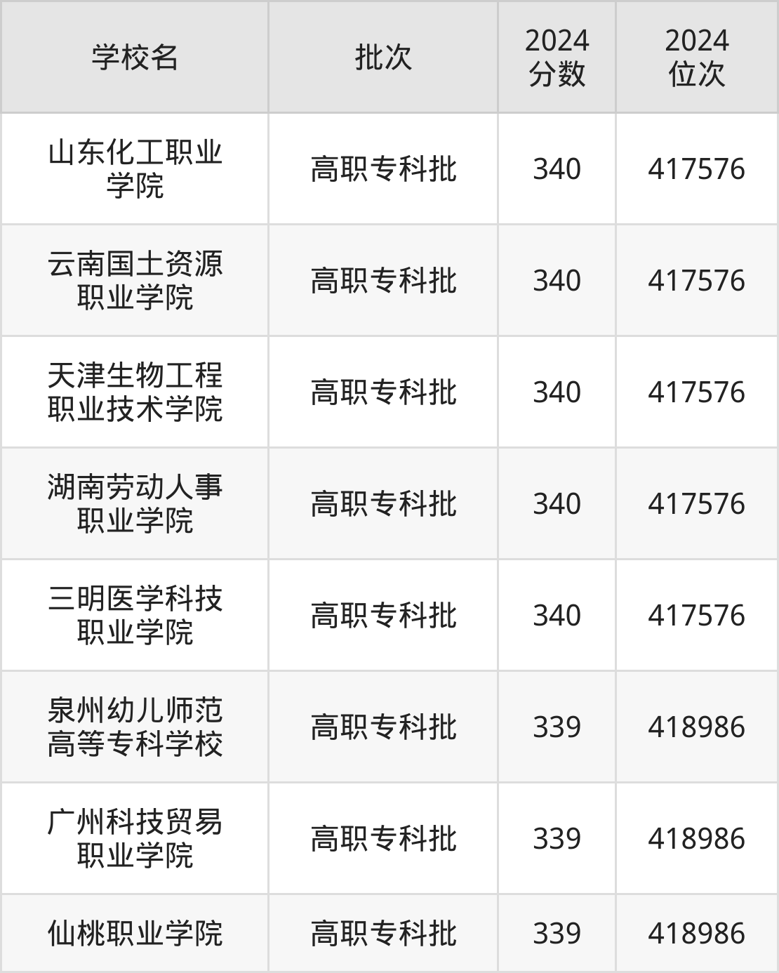 2024年河南高考理科339分(417578名~418987名)能上的大学有仙桃职业学院、广州科技贸易职业学院、泉州幼儿师范高等专科学校。