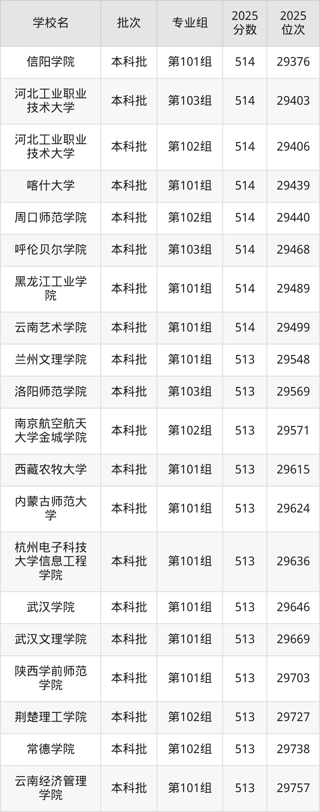 这些都是2026年高考历史类29544名~30102名考生可以报考的大学,更多学校名单如下表所示: