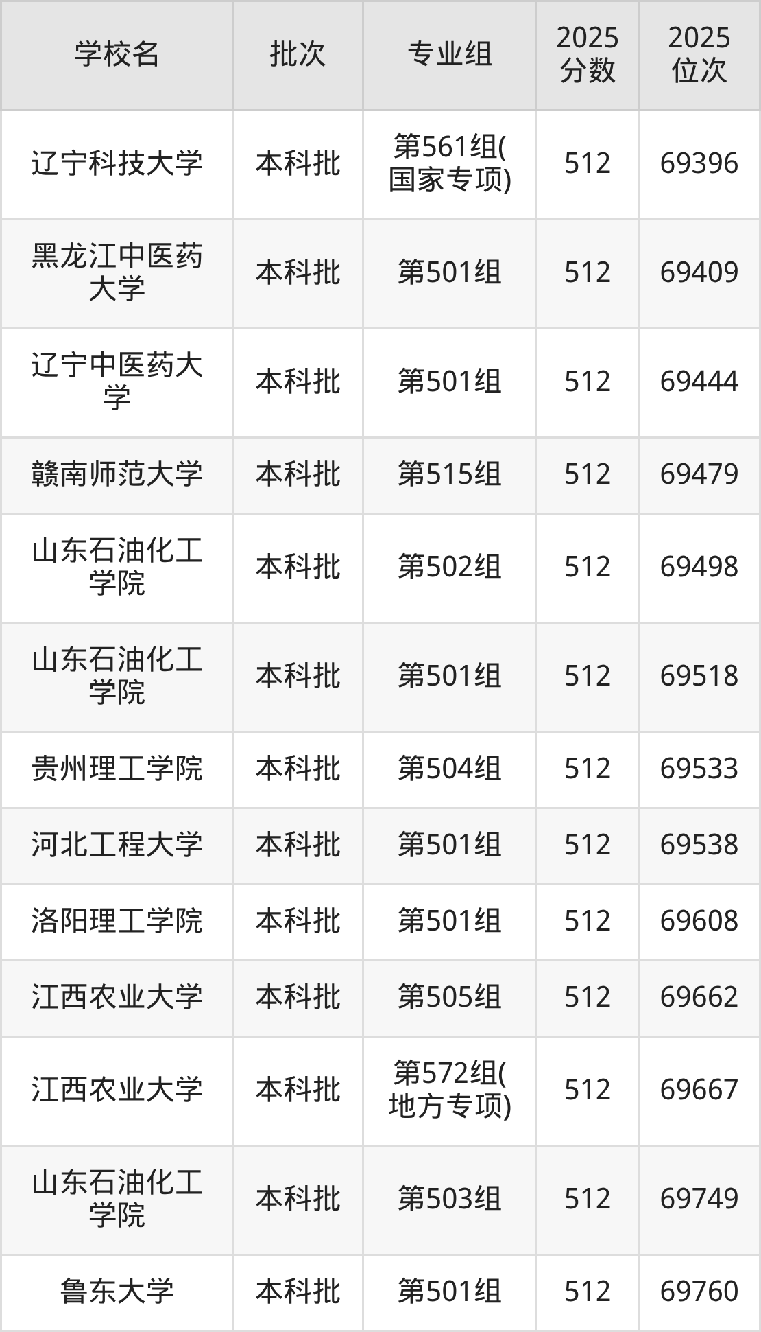 这些都是2026年高考物理类68185名~69294名考生可以报考的大学,更多学校名单如下表所示:
