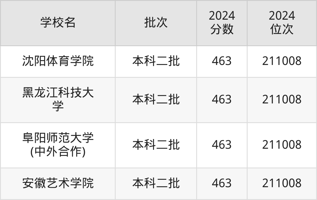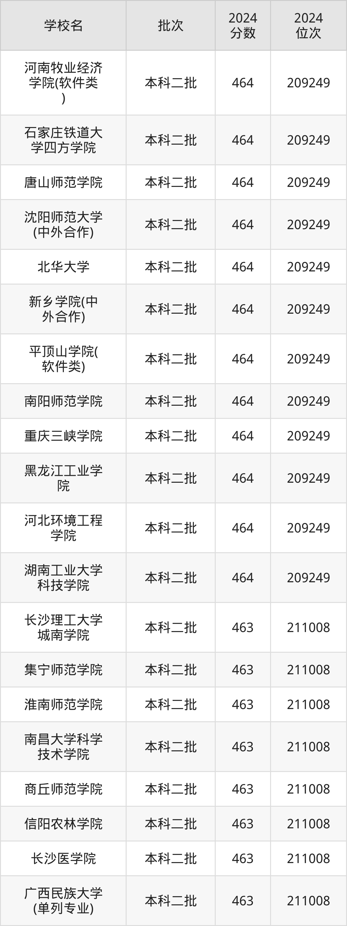 2024年河南高考理科463分(209250名~211008名)能上的大学有黑龙江科技大学、商丘师范学院、沈阳体育学院、长沙医学院等。